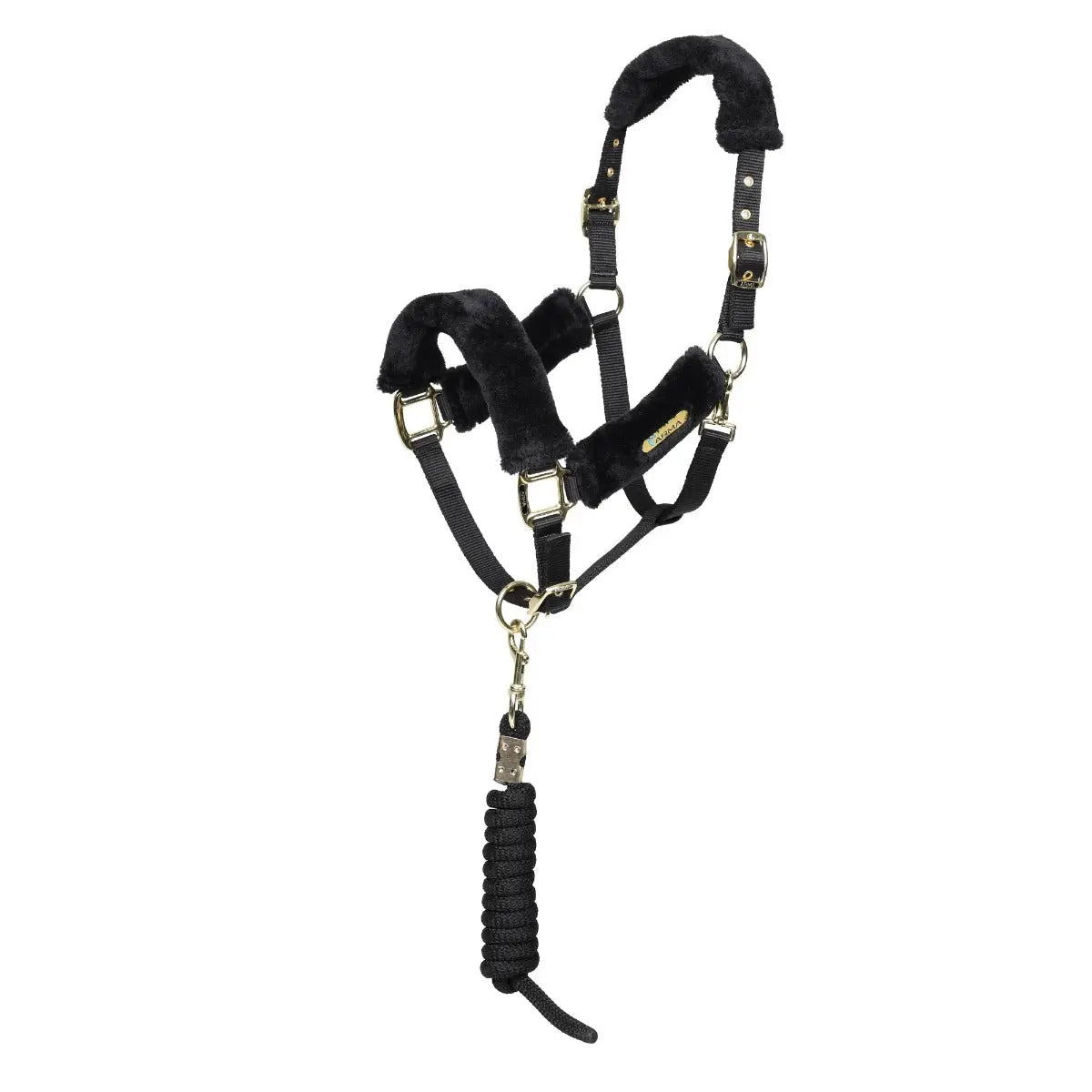 The headcollar and rope are accessorised with high shine gold colour fittings.