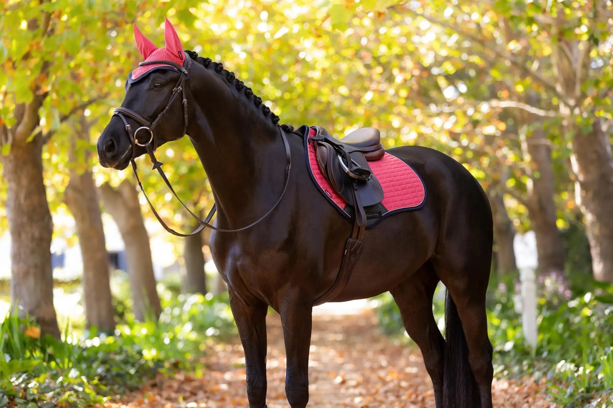 The luxurious yet easy-care suede-effect upper is perfect for everyday occasions. It is finished with smart LeMieux-branded spine tape, while contoured friction-free binding prevents misshaping. Our signature breathable natural bamboo blend lining absorbs and controls sweat under the saddle and is naturally antistatic, antimicrobial, and quick-drying. It's also beautifully comfortable and secure, minimising friction even on sensitive-skinned horses.A durable girth protection area ensures lasting quality. Girth keepers incorporate inner looped channels to offer more girthing options for optimum fit. Elasticated shaped D-ring tabs allow easy, non-slip attachment to the saddle while still leaving room for extra training aids to be clipped on.