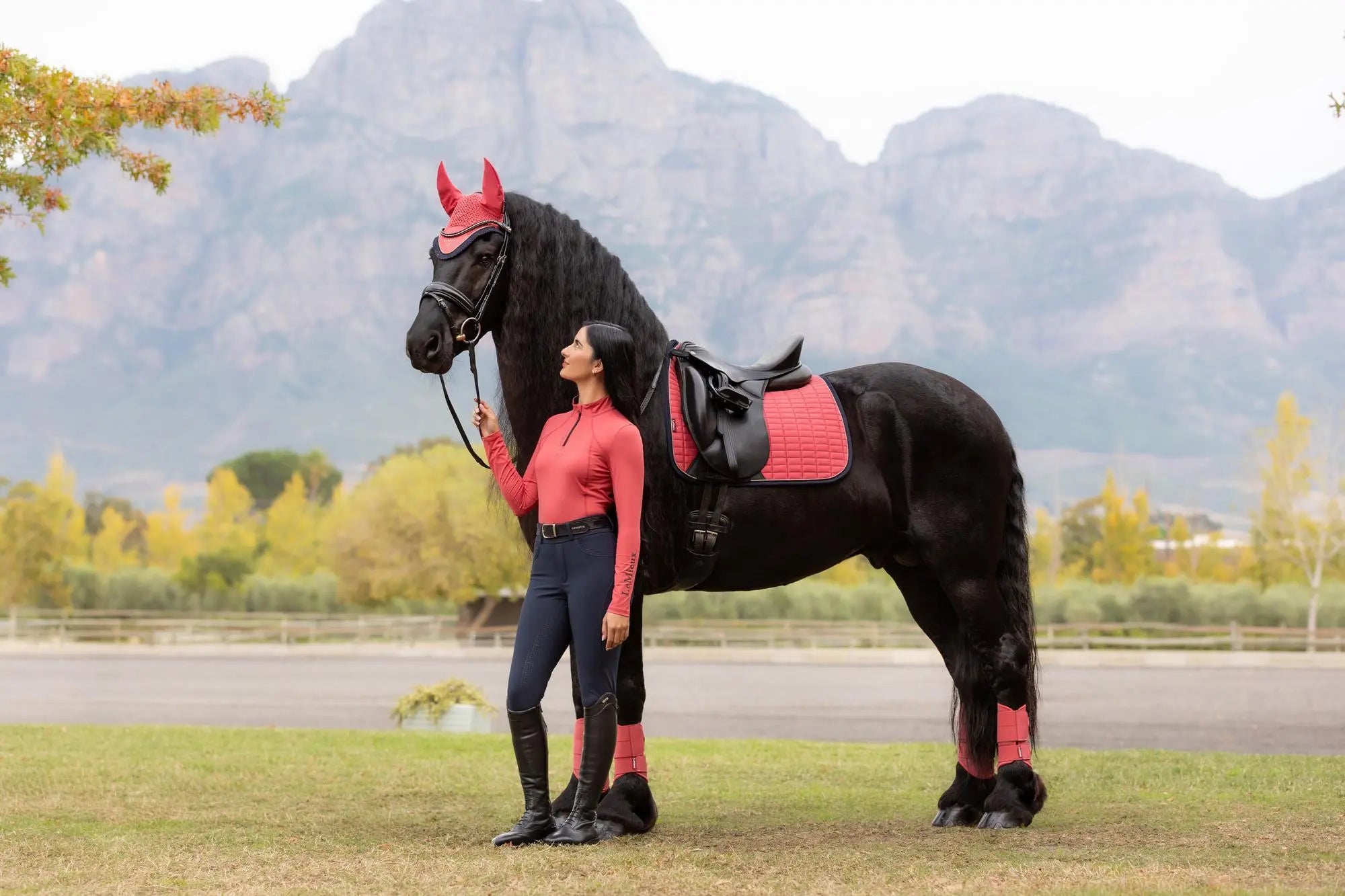 Match your Suede Dressage Square with a Classic Fly Hood in the same colour to complete the look.