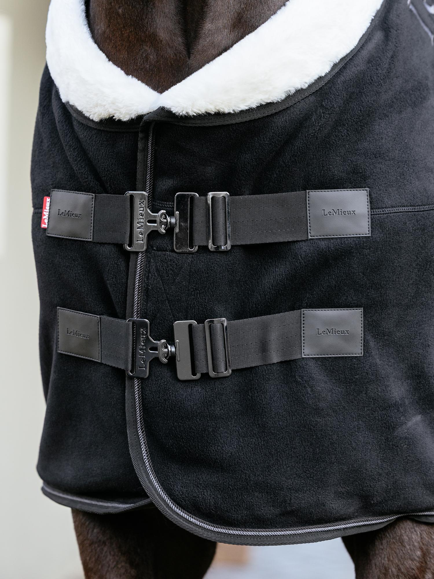 It features a comforting fixed rolled faux-fur collar, stand-out LeMieux logo embroidery, braided hip ornaments and fillet cord, and an adjustable double T-bar front closure for comfort and security. Inside/outside adjustable surcingles offer different fit options for versatile use, at home or when travelling to shows and events.