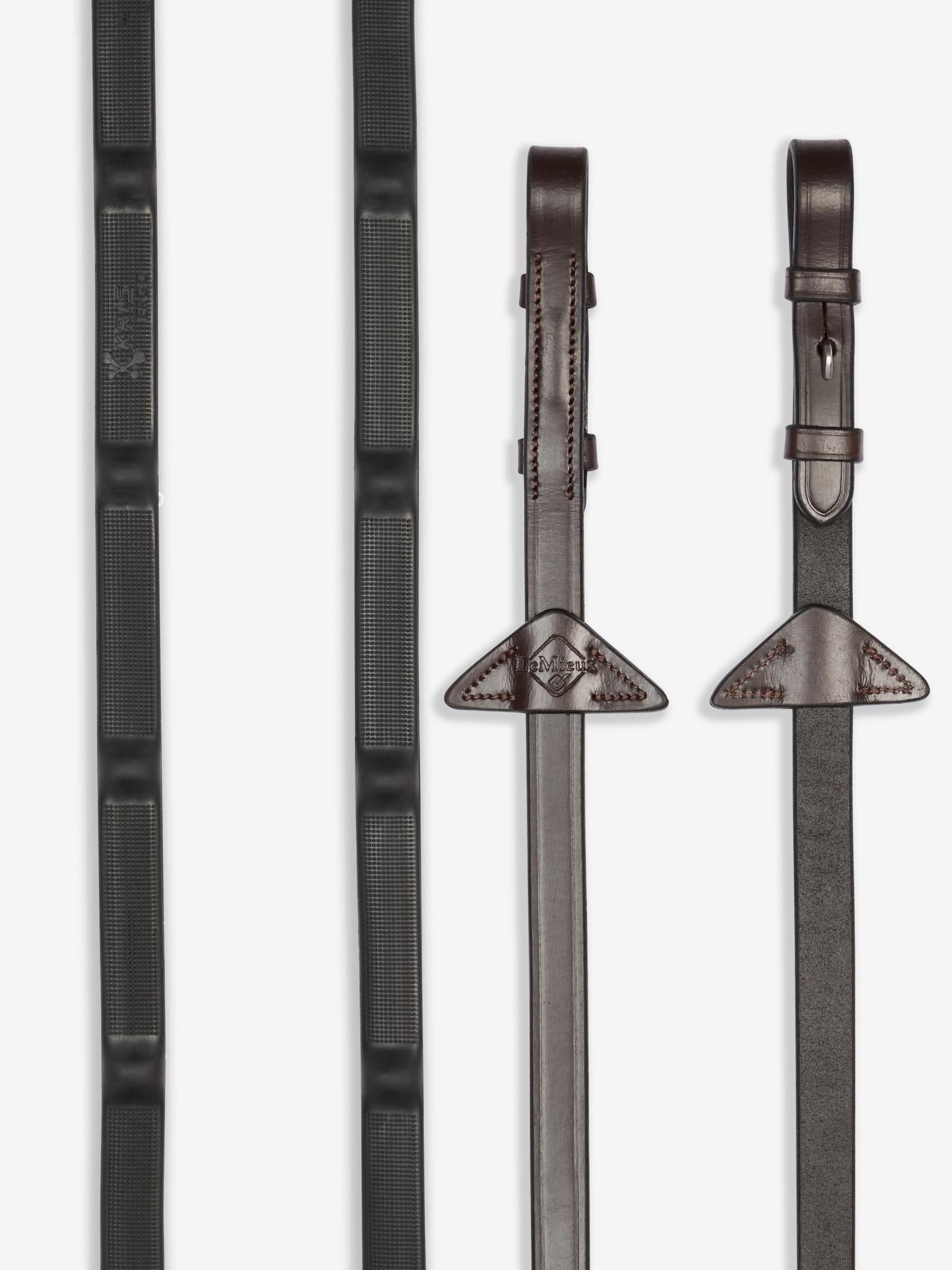 Finished with billet bit attachments and LeMieux’s signature stamped leather martingale stoppers, these reins combine practical performance with a smart, professional look.
