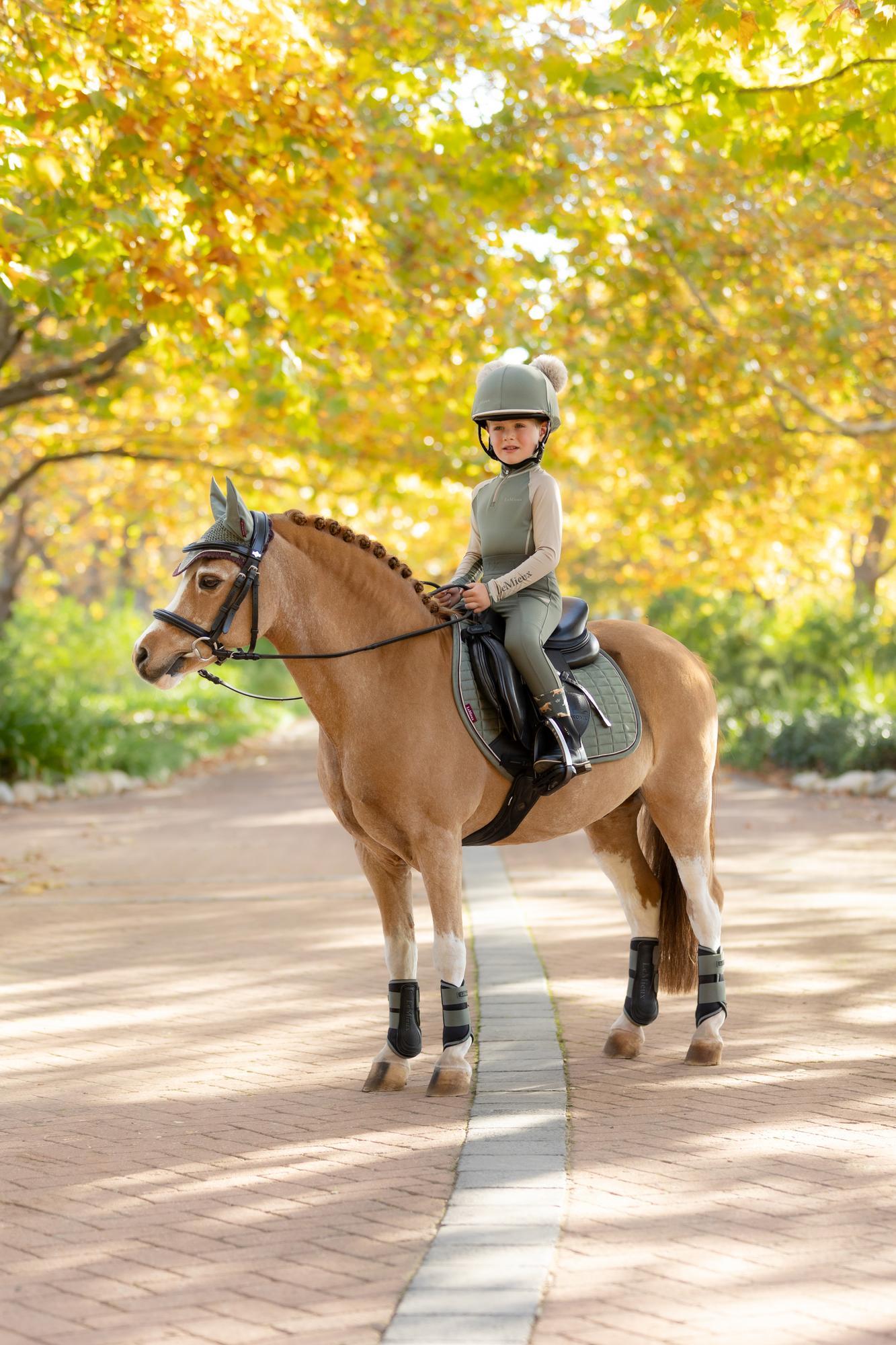 With 360° stretch for unrestricted comfort, this base layer is a mini must-have. Whether your mini rider's running around, getting in the saddle or simply out for a walk, the moisture-wicking fabric will help regulate their body temperature to keep them cool and dry. The silky-smooth fabric features UV50+ protection, ideal on sunny days. Ultra-soft seams and flat lock stitches increase the comfort factor and keep bulk to a minimum for layering under fleeces, jackets or gilets. With subtle design changes between the different colours in the range, it's an ideal way to add mini power to your little rider's horse riding wardrobe! Choose from a variety of eye-catching colours and coordinate the look with our matching Mini Hat Silks and other accessories.