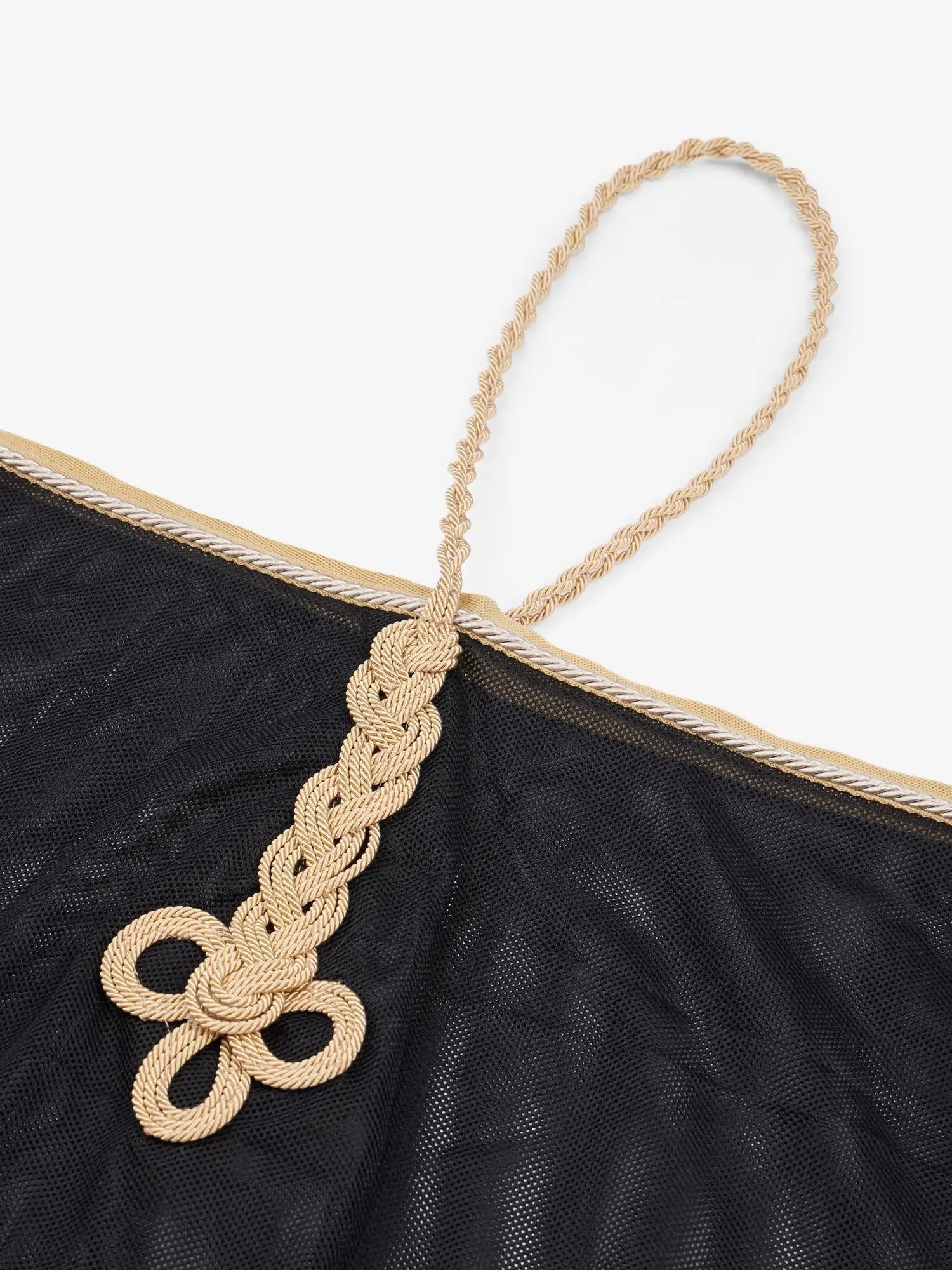 A smart, lightweight mesh dress cooler that's ideal for use at competitions, shows and events. Created in classic colours with smart contrast binding and a traditional braided cord hip ornament, it elevates your look to elite level.