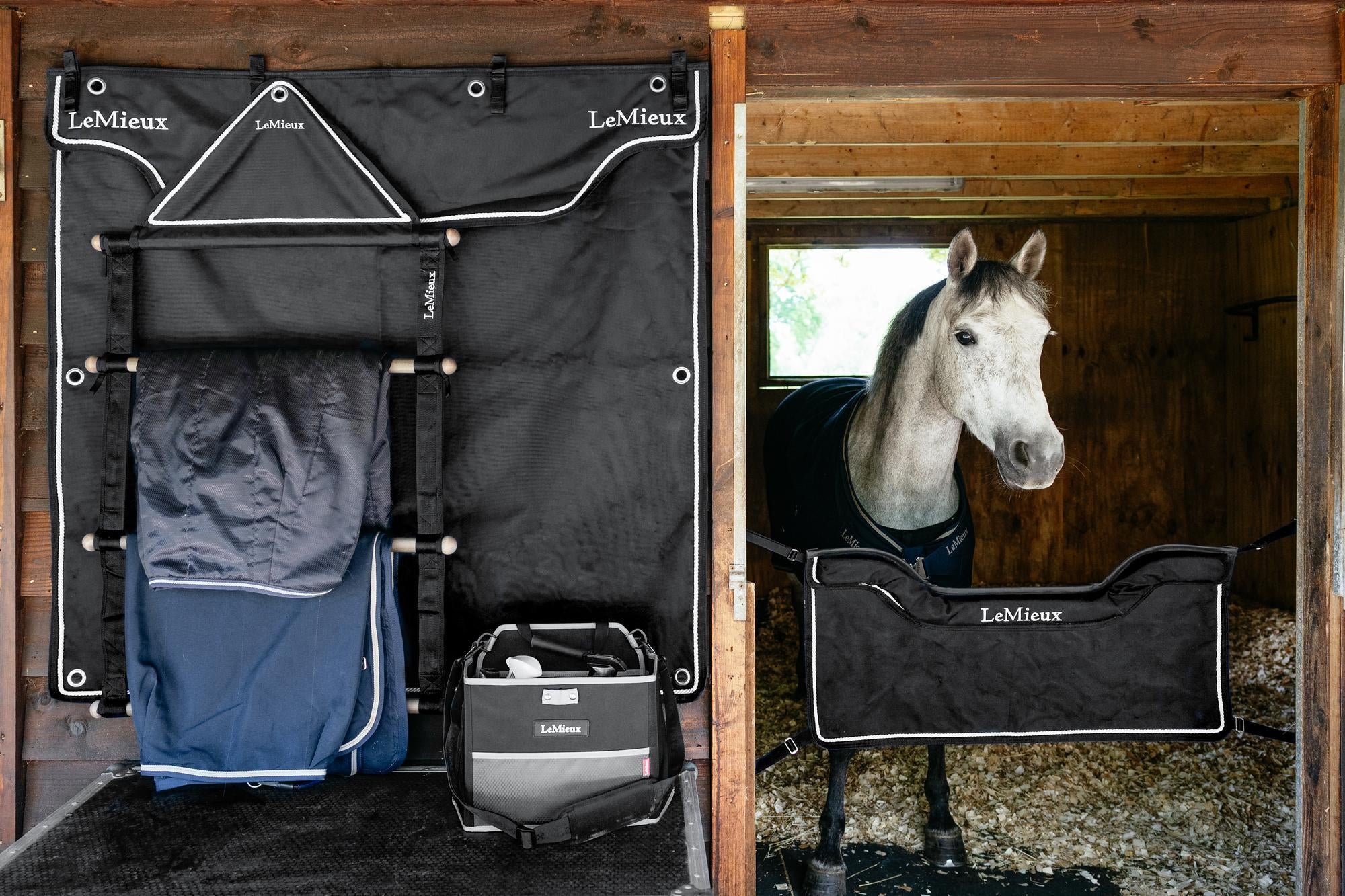 Eyelets and strong double lock hook and loop straps are ideal for hanging securely, while two clips (under the top flap) are perfect for hanging other items, e.g. the Show Rug Hanging Rack.