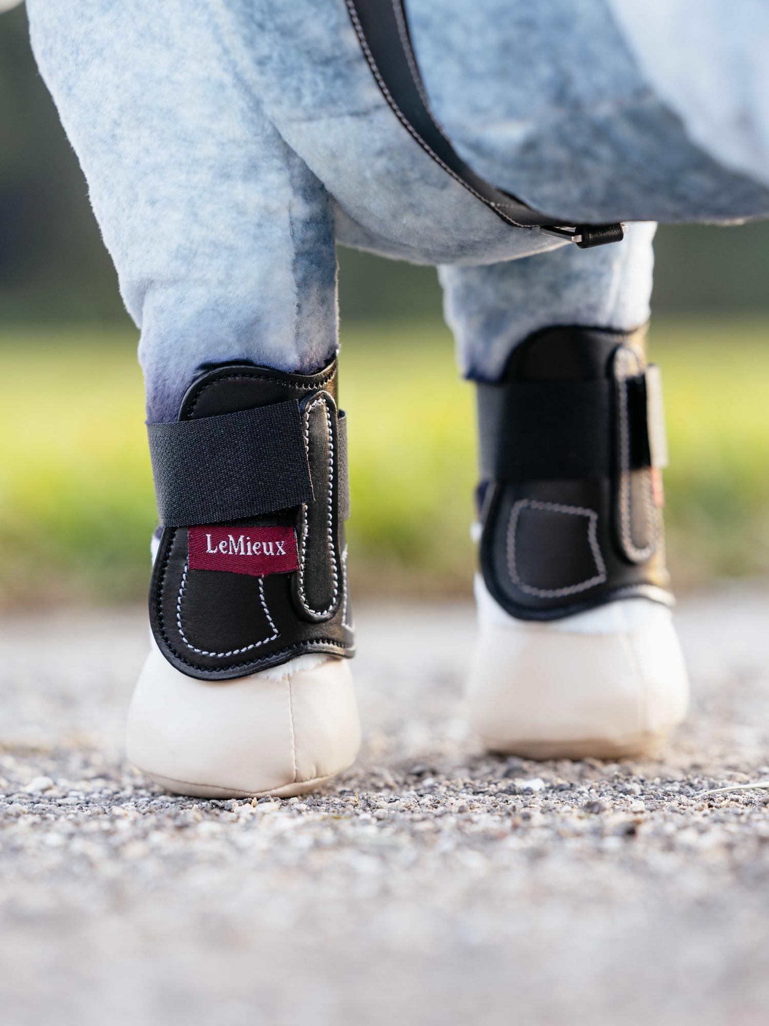 Toy Ponies will love schooling in these smart and traditional-looking boots, worn to protect their legs from brushing knocks and scrapes. These smart and functional boots are made just like the real thing with faux leather strike guards and perforated sections to promote airflow and prevent over heating. Elasticated hook and loop straps offer an easy fit, ideal for little equestrians to learn how to boot up. Suitable for ages 3+