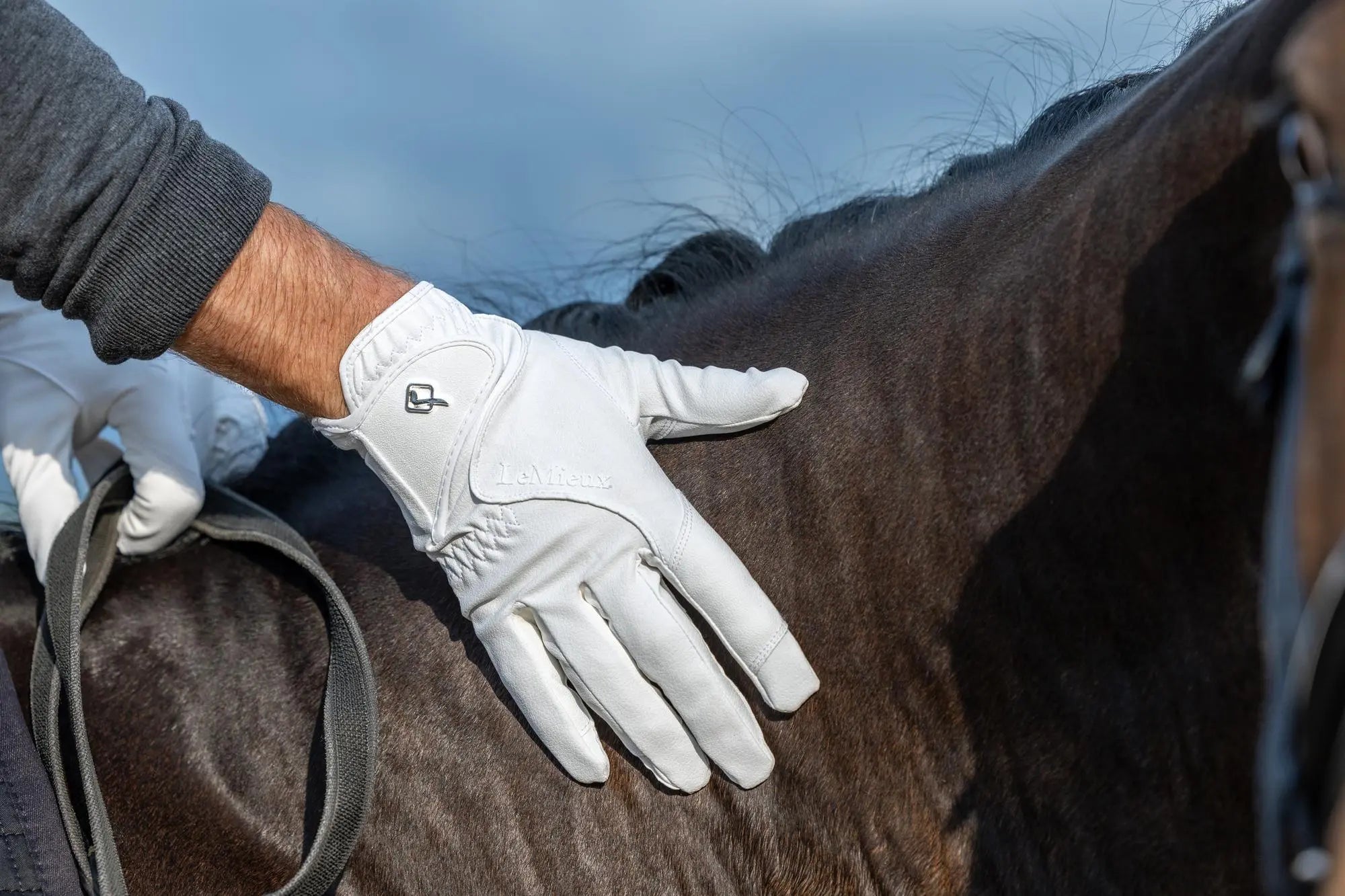 Ideal for riding, the double rein grip and new seam design allow sensitive communication on the reins.