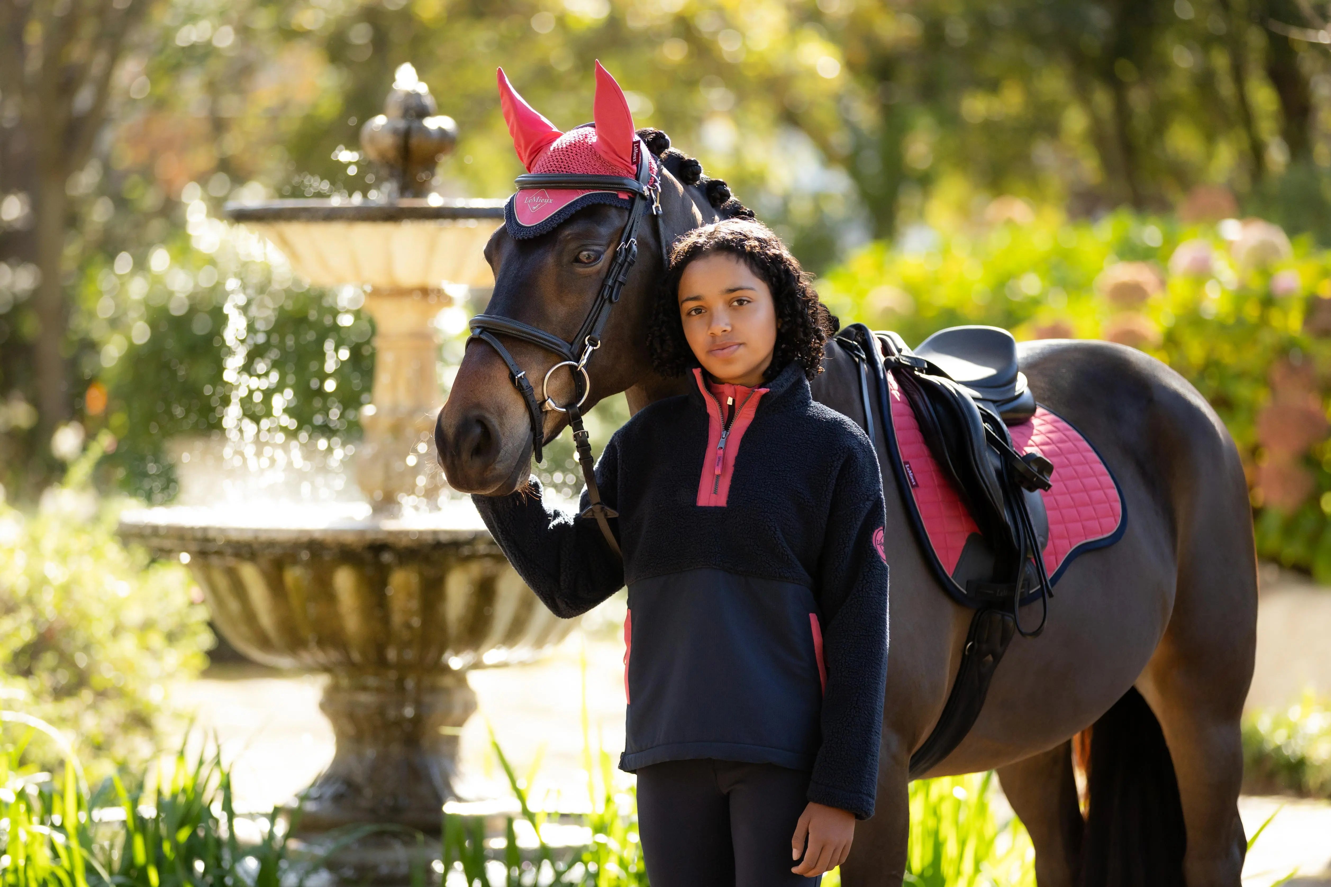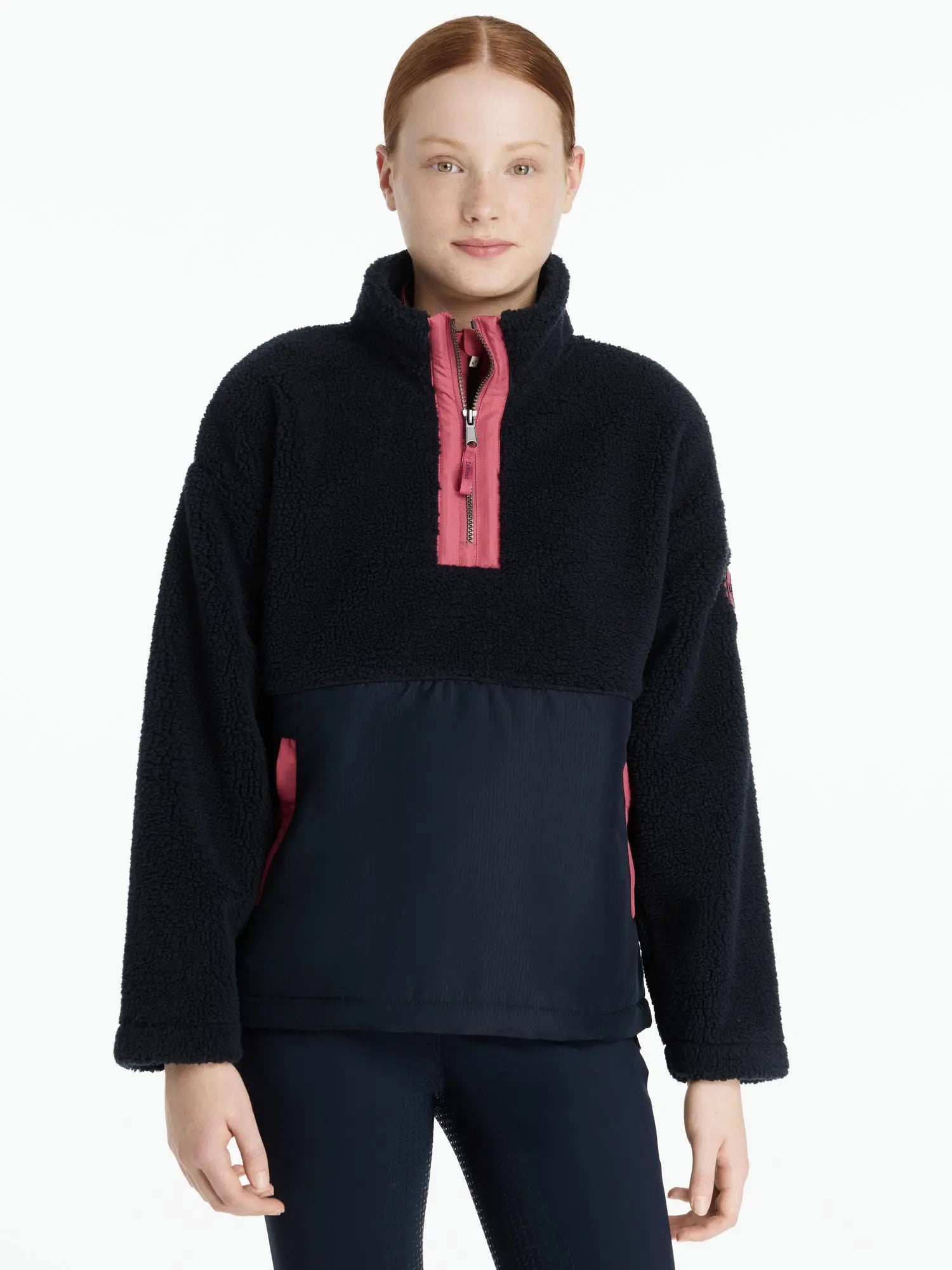 The Tammy Teddy Fleece for young riders is an ultimate layer of cosy warmth. Crafted from super soft teddy fabric with woven panels, it feels luxuriously comfortable against skin, whether worn as loungewear or an additional layer for winter riding. It features a ribbed hem with a side zip to keep in the warmth and to make changing layers easy. Zipped pockets, an embroidered LeMieux logo at the sleeve and a quarter zip neck are both stylish and practical.