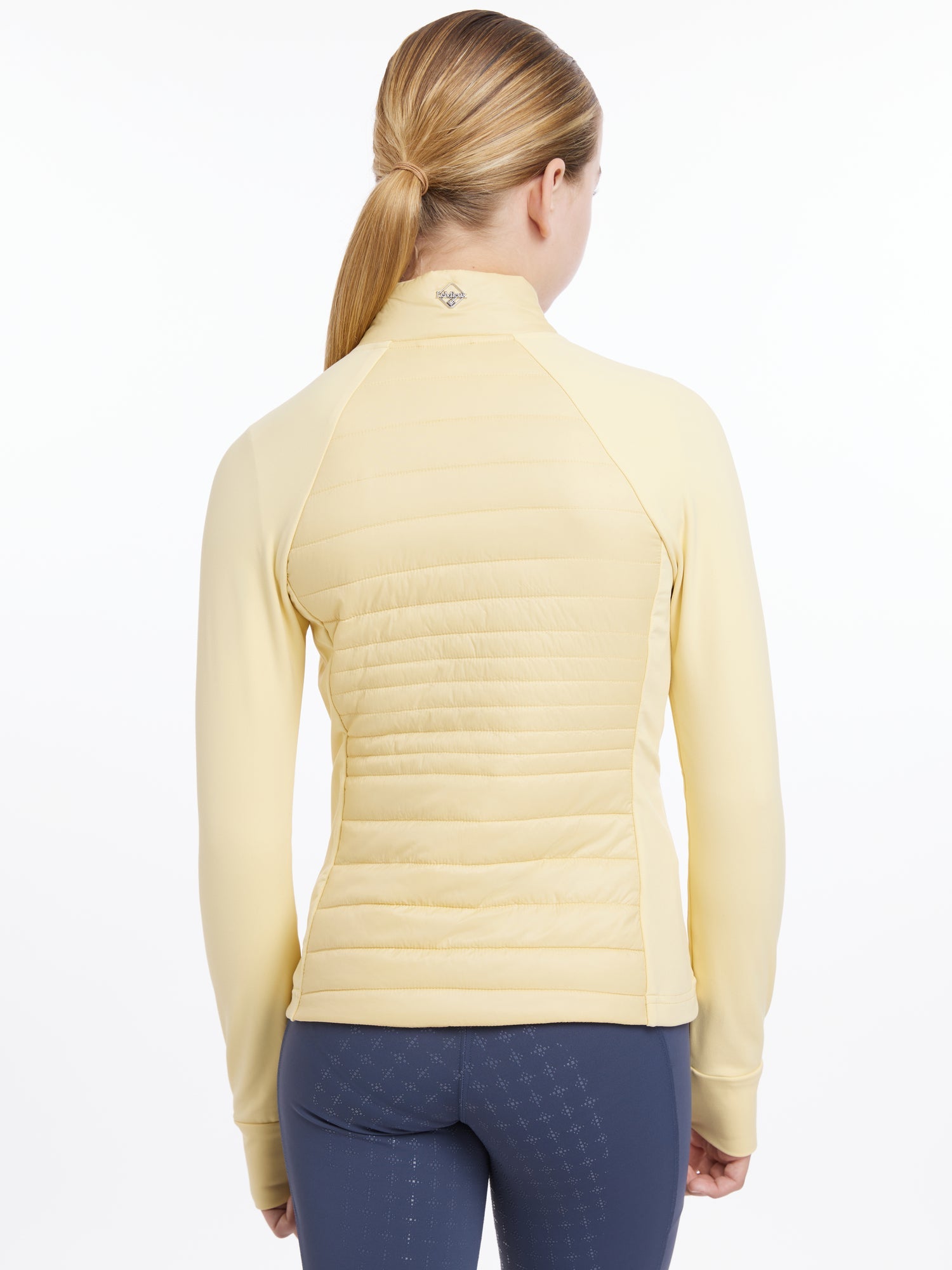 Designed for layering under coats, this style has super soft jersey sleeves and side panels for a flattering fit, while lightweight woven baffle quilted insulation at the back and front keeps you cosy and warm. As a step toward sustainability, the non-slip fill is made with fully recycled materials. The discreet high-build LeMieux print logo on the chest and a metal badge LeMieux logo on the back of the neck indicate a mark of quality.
