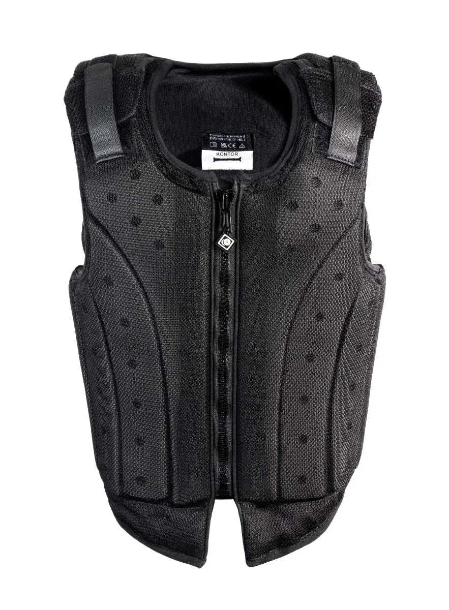 Extremely comfortable, this body protector from Charles Owen rapidly molds to your child's body making it one of the easiest-to-wear safety garments on the market. From a fitting point of view, the Charles Owen Kontor body protector is one of the easiest and offers superb growing room thanks to chest and shoulder adjustment. This junior body protector meets the highest EN13158:2018 and BETA 2018 Level 3 Standard.