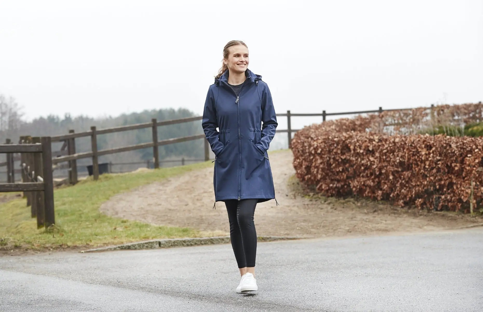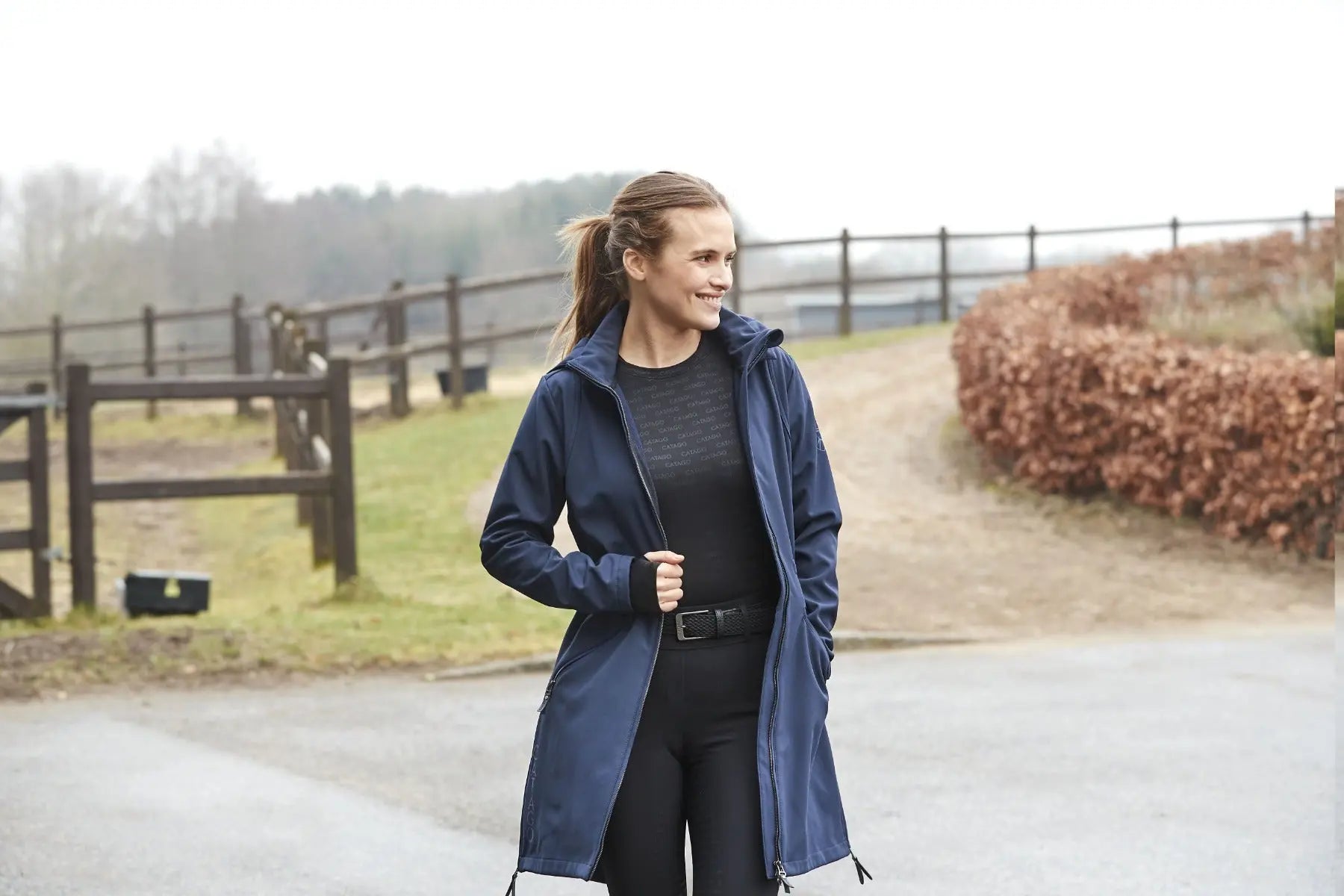 Introducing the Catago Ladies Abby Ladies 3/4 Length Softshell Jacket, a perfect blend of elegance, functionality, and style. This longer length three-quarter length ladies' horse riding coat seamlessly combines the advantages of a softshell jacket and a parka coat into one perfect, lightweight jacket. Crafted for effortless daily wear, this lightweight jacket combines practical features with a feminine cut perfect for riding.