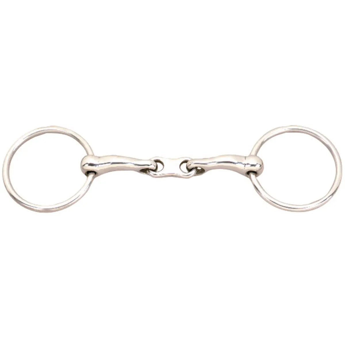 The JP Korsteel Stainless Steel French Link Loose Ring Snaffle Bit features a french link joint and a unique curved shape to the mouthpiece which has a multitude of benefits.