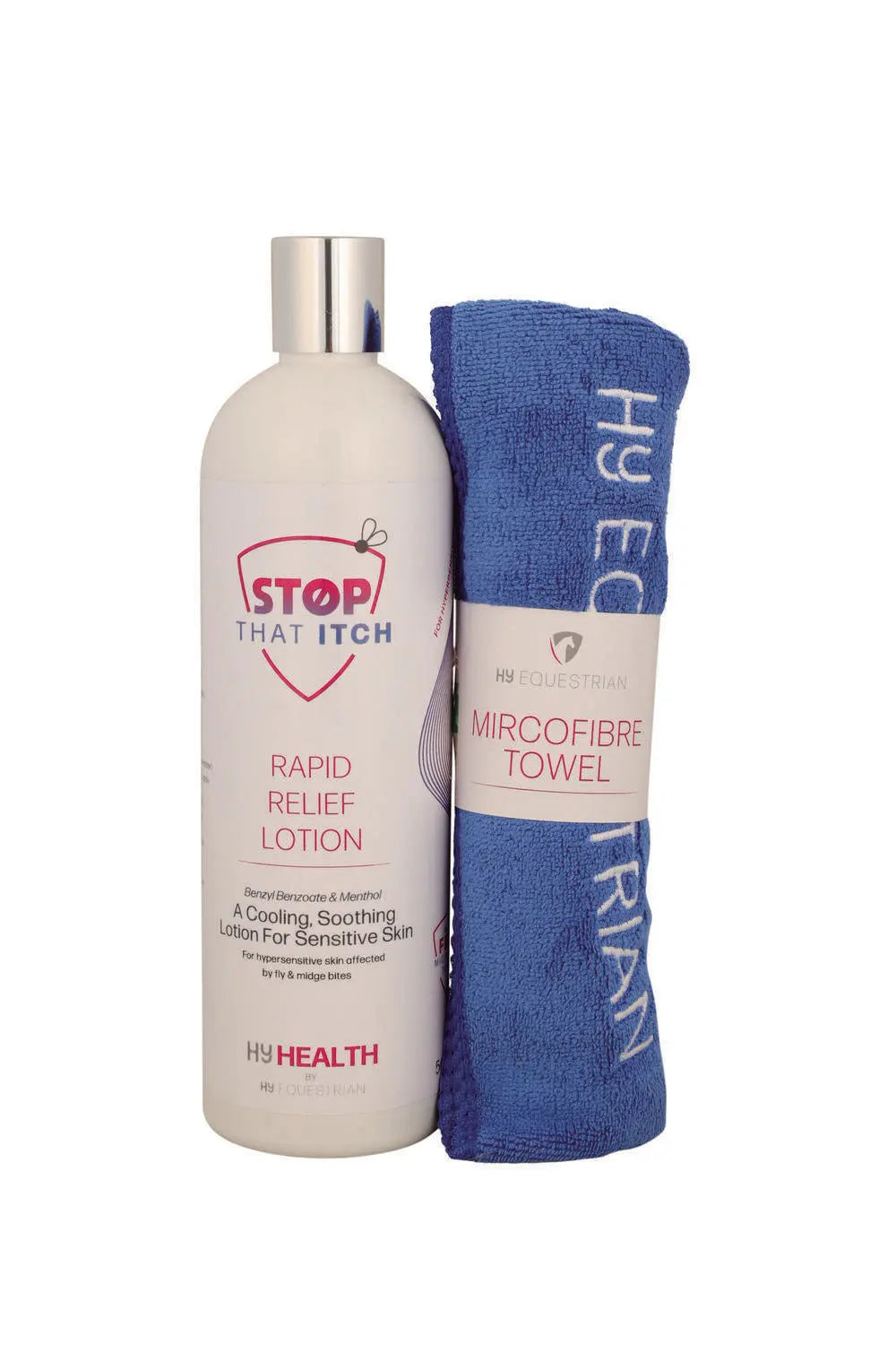 HyHEALTH STOP THAT ITCH! Rapid Relief Lotion with Microfibre Towel by Hy Equestrian| Online For Equine