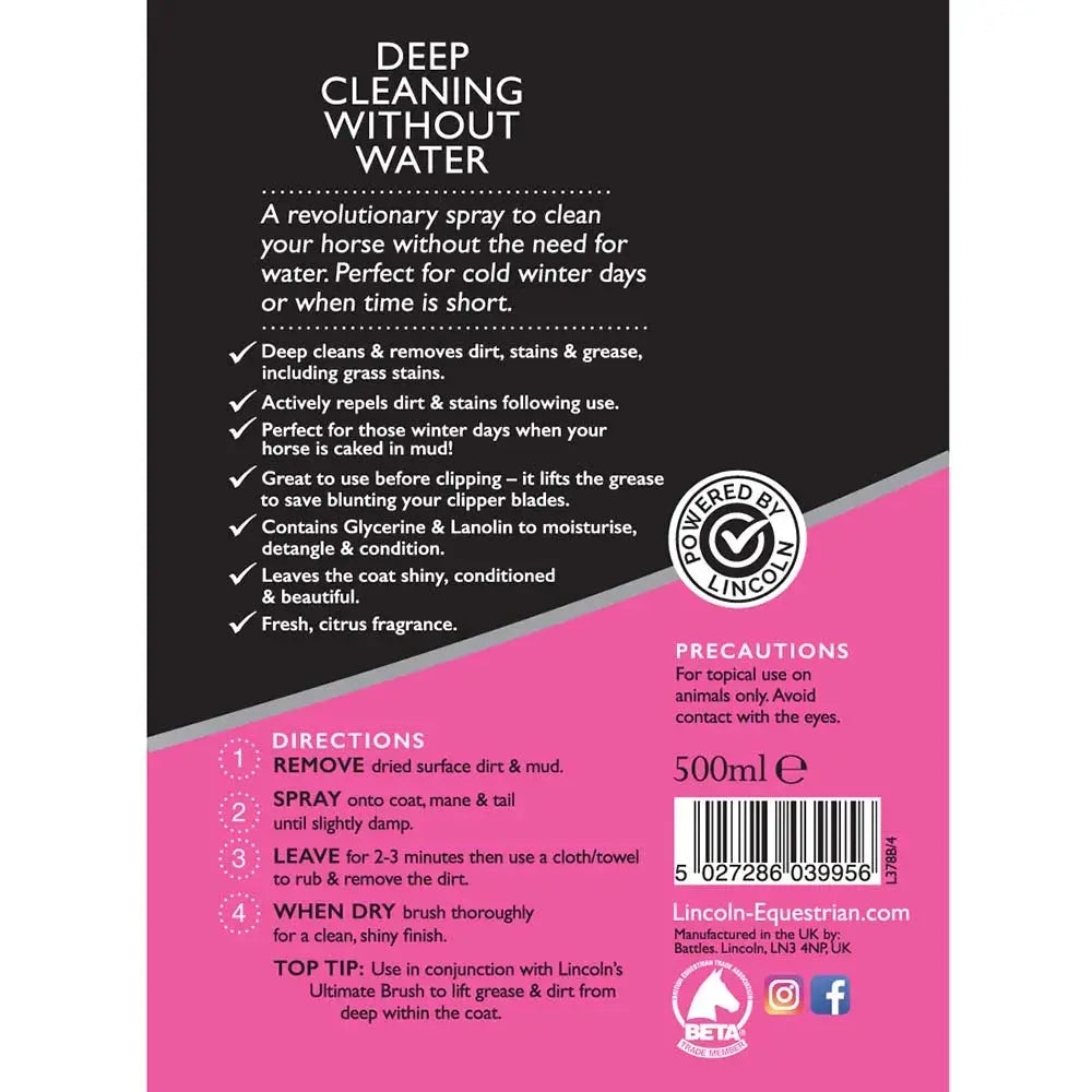 The ideal time saving grooming product. Removes dirt and stains, yet leaves the coat looking and feeling at its very best - without washing. Cleans and conditions at the same time. Contains moisturising and detangling agents. Actively repels dirt and stains. Totally unbeatable!