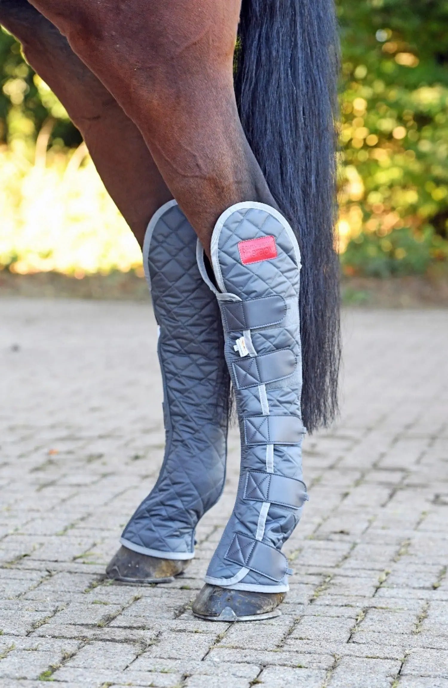 The Equilibrium Hind & Hock Magnetic Chaps are soft, comfortable magnetic stable chaps with an ergonomic design to fit the horse's hind legs. These magnetic chaps provide cover from hock to heel and are ideal for horses who suffer from arthritis of the hock joint, or are prone to fluid filled legs when stabled.