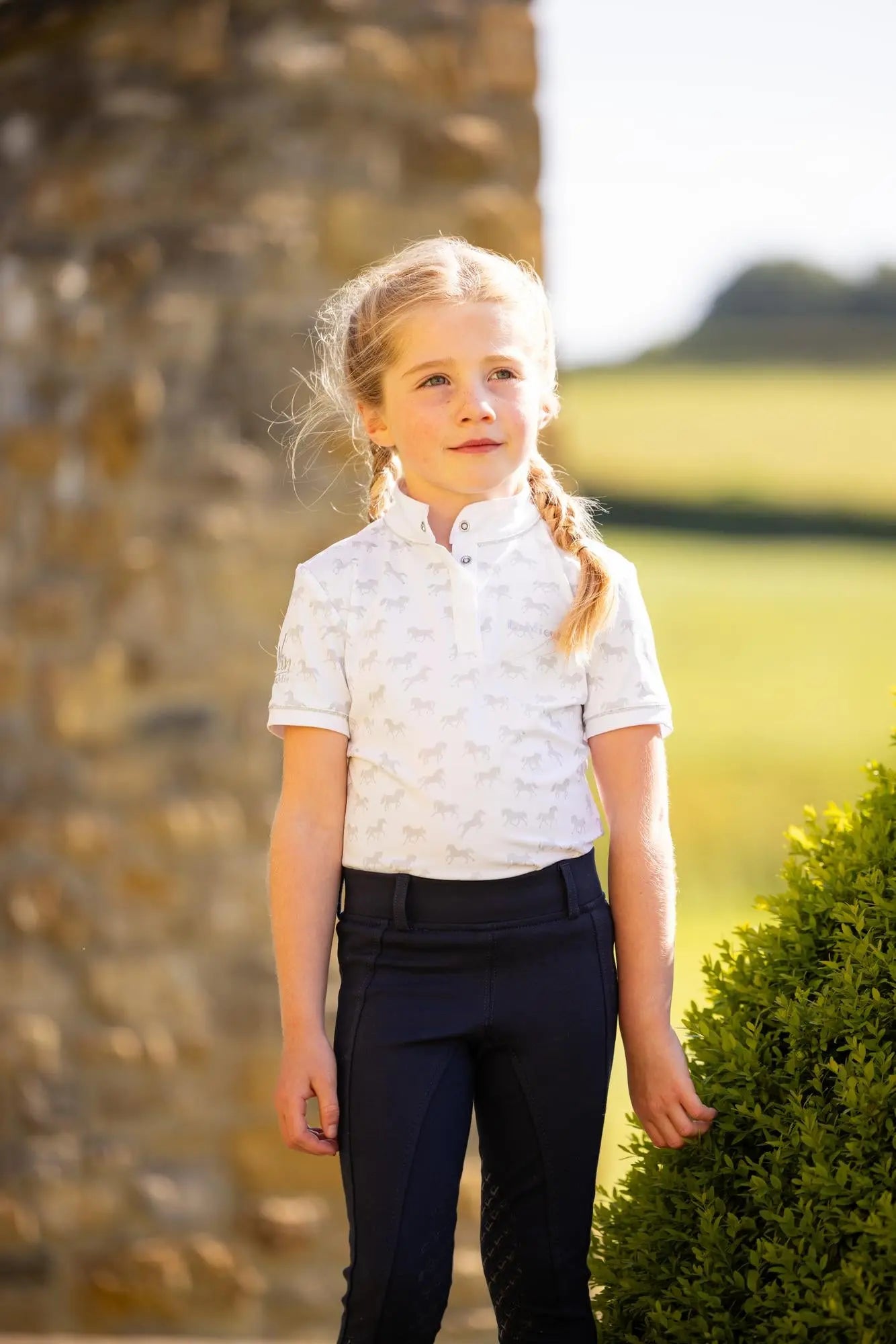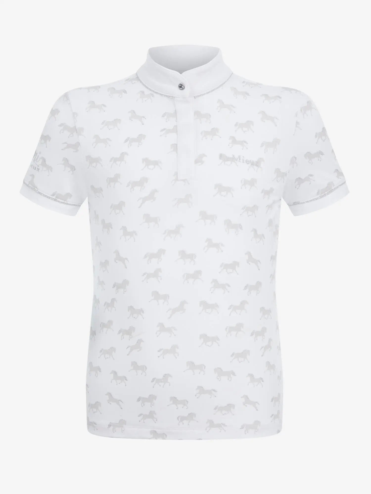 With an all-over print with a glittery mane and tail, the Mini Bella Short Shirt is perfect competition wear for the mini rider.