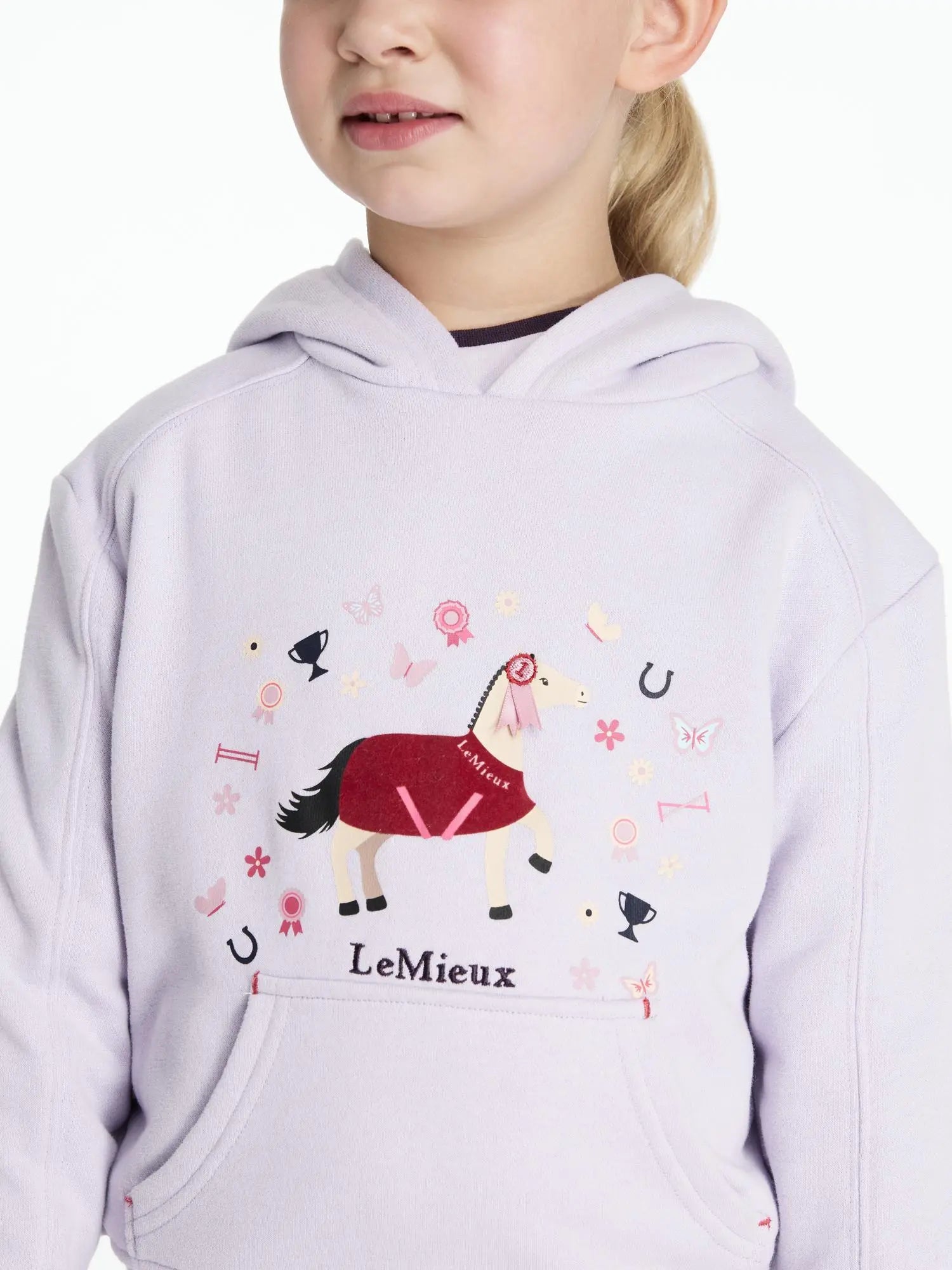 Spend happy days outdoors in the Mini Romi Hoodie in Lilac. Crafted in premium textured brushed cotton, this pop-over hoodie features a relaxed fit, drop shoulder, and kangaroo pocket for a laid-back style that's both comfortable and practical. The unique pony appliqué, with playful rosette or string mane and tail details, add a fun and playful twist, perfect for adding a touch of personality to your little one's look. Effortlessly cosy and warm, playtimes are endless in this must-have hoodie.