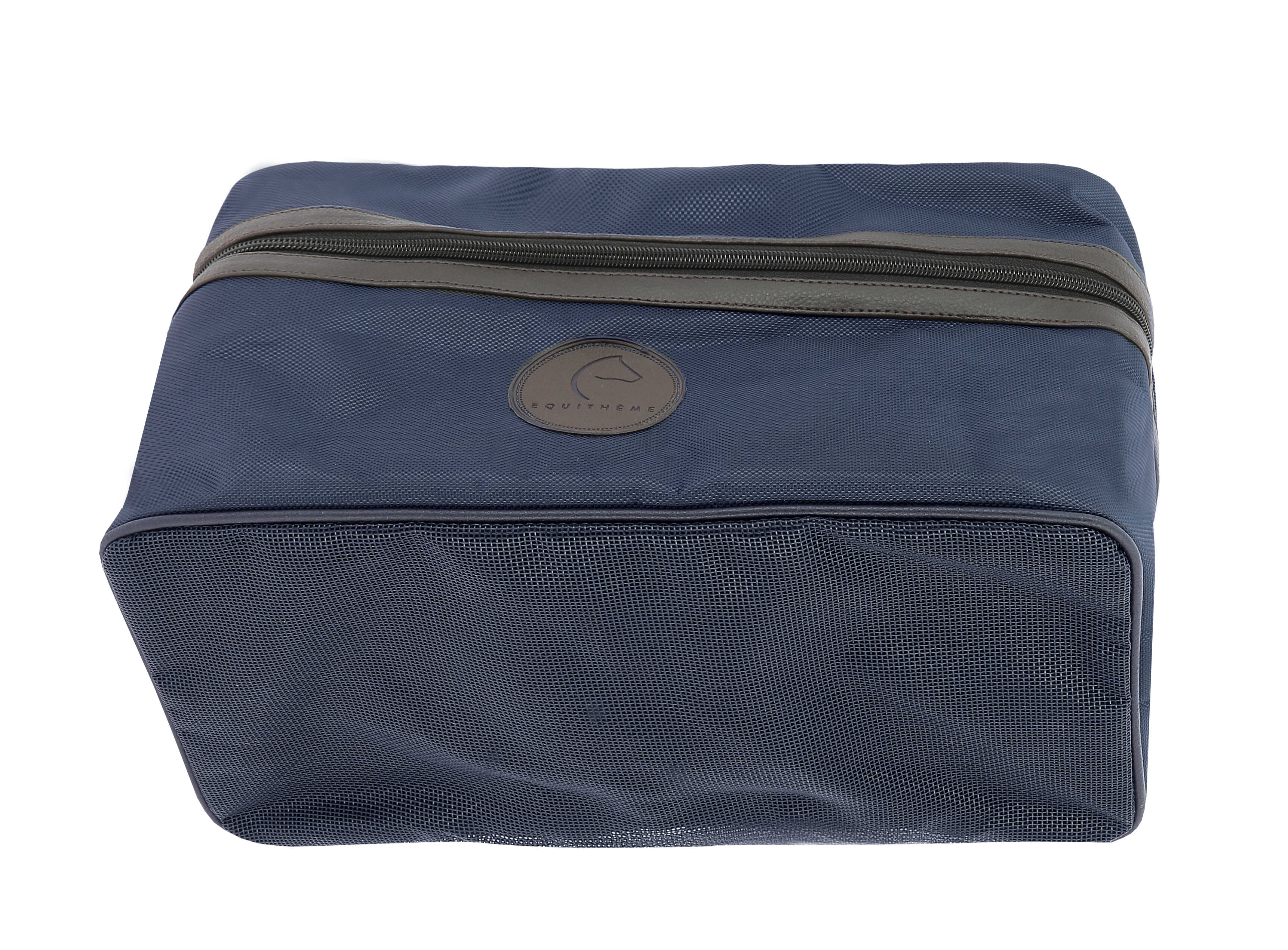 - Practical: Vanity case format with two-way zipper closure, handles, and shoulder strap. - Multi-compartment: 8 removable padded compartments secured with hook-and-loop strips inside. - Breathable: Bottom made of 100% polyester mesh. DETAILS: - Finishes and EQUITHÈME round logo in simulated leather.