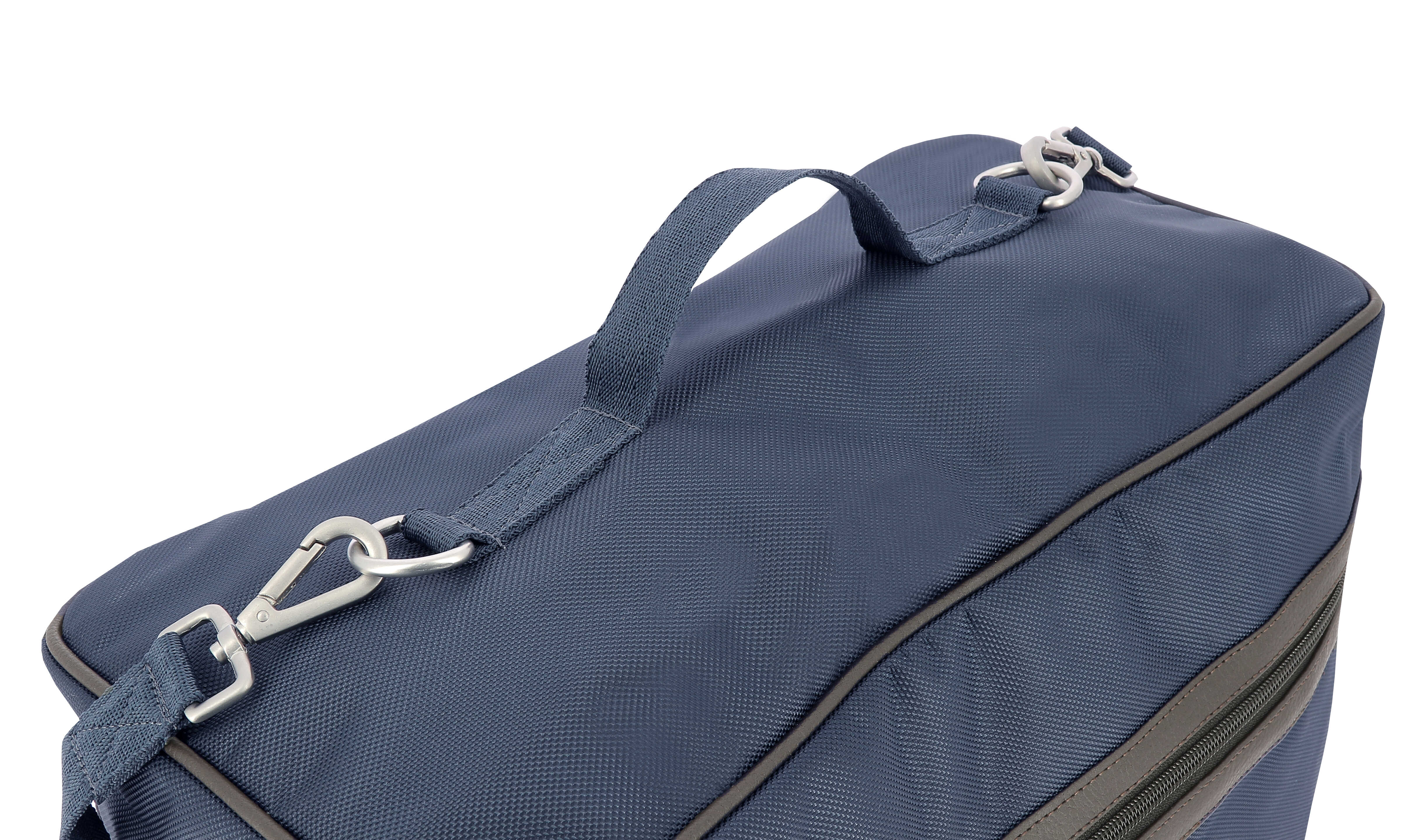 - Practical: Vanity case format with two-way zipper closure, handles, and shoulder strap.