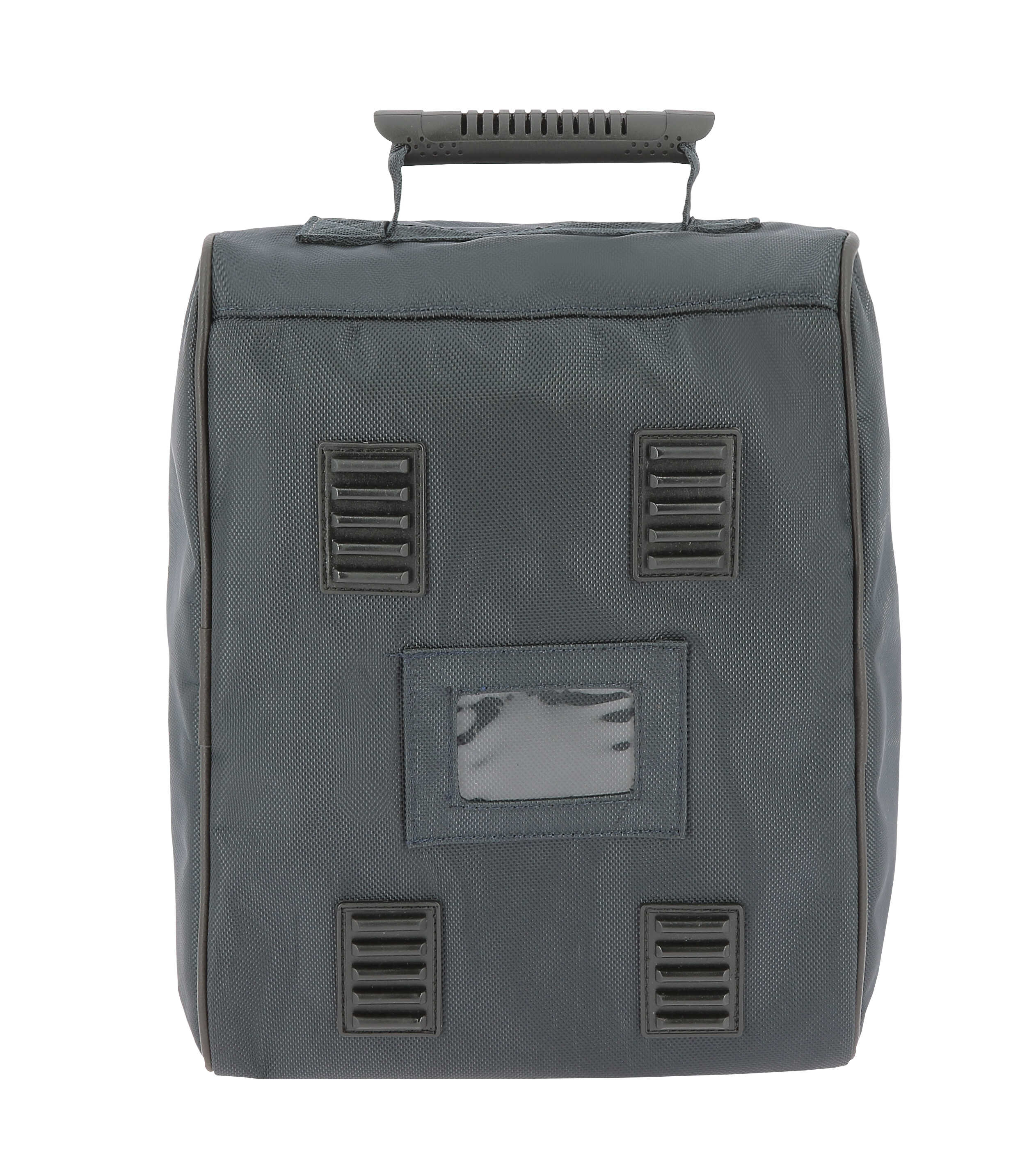 - Two-way zipper closure on the front, side pocket. - Plastic handle for easy transport. - Durable: Protective floor pads and reinforced bottom plate. DETAILS: - Finishes and EQUITHÈME round logo in simulated leather.