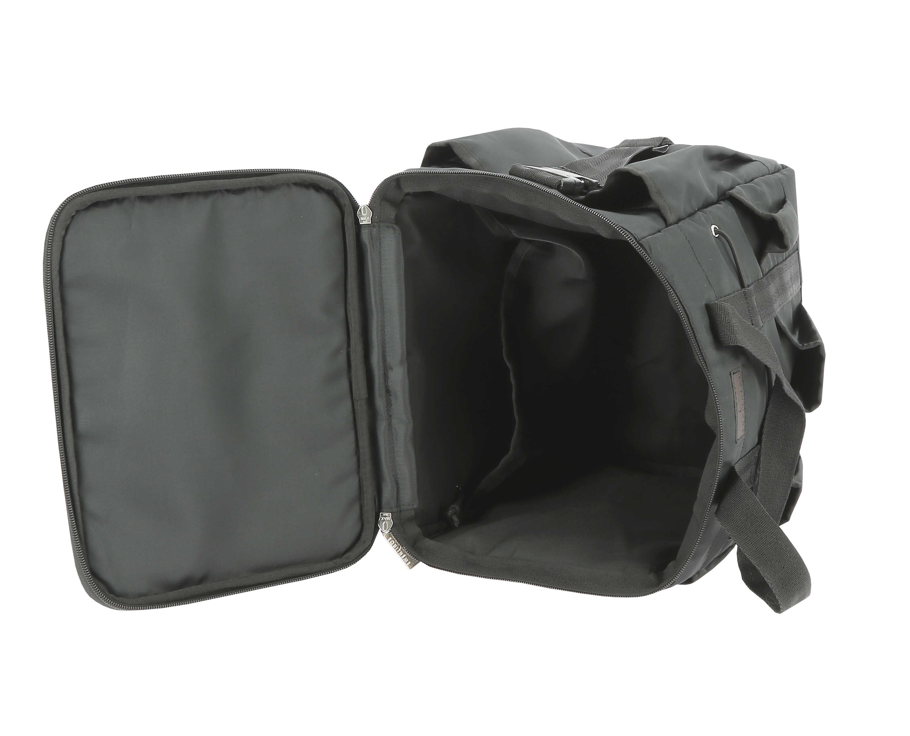 - Two-way zip closure, 2 handles, and an adjustable removable shoulder strap with clips.