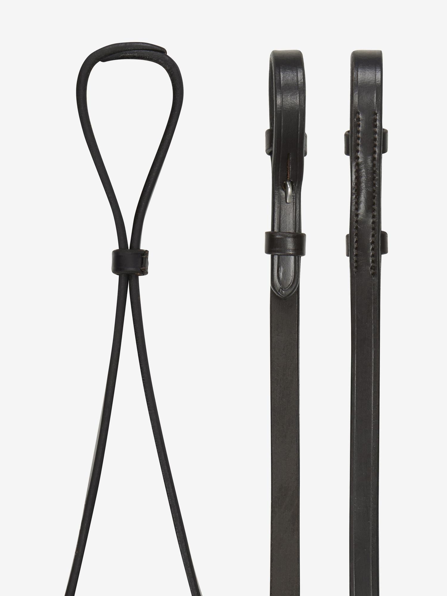 With a discreet sewn join typical of curb reins, this has discreet billet end attachments that fix the rein to the bit.