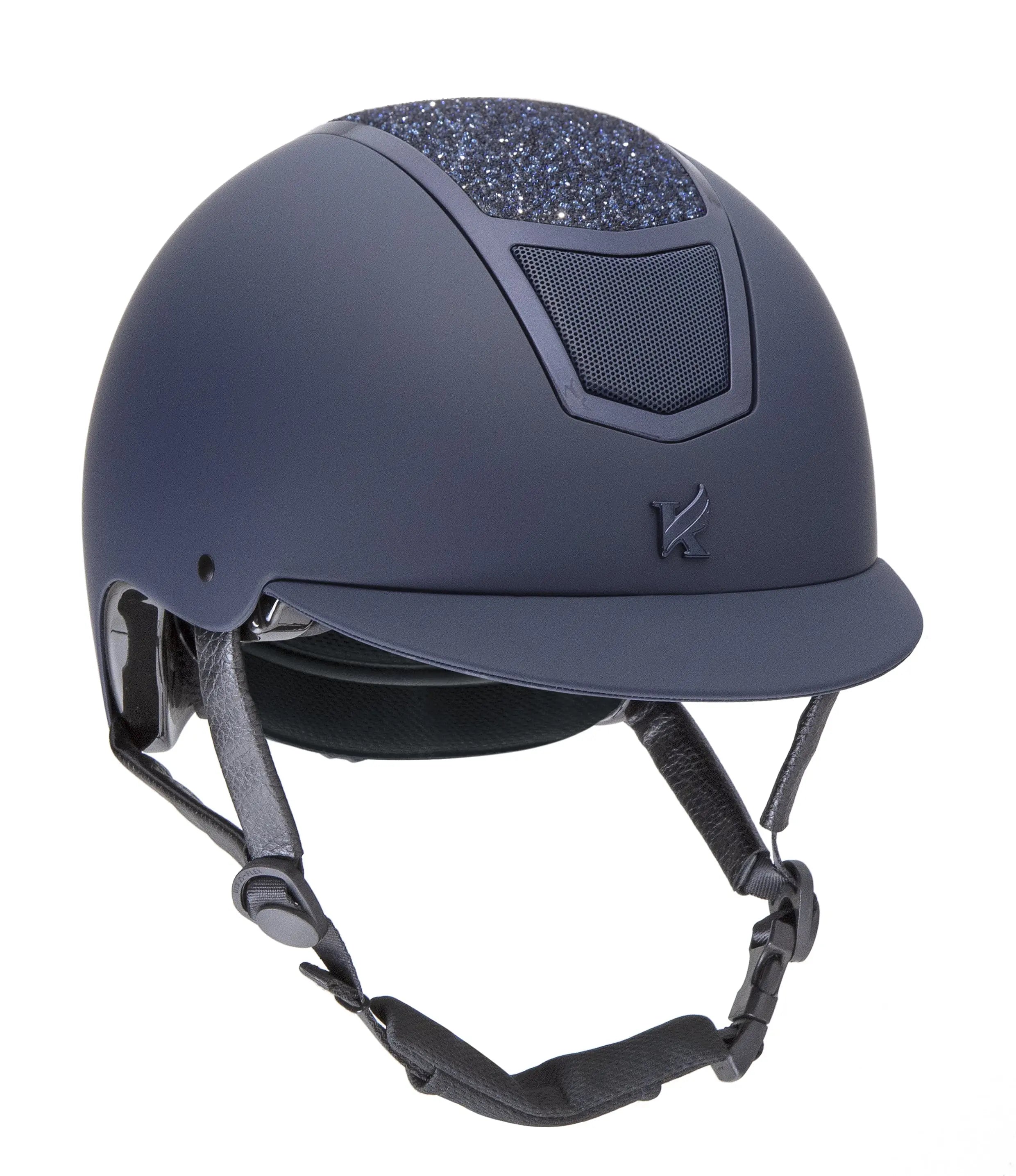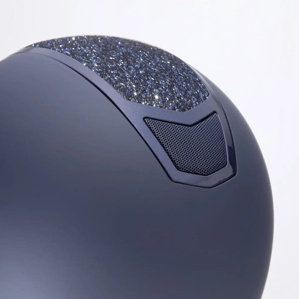 The Karben Valentina Riding Hat is a must for standing out in the arena! This helmet is available in navy with a navy glistening central panel for a truly eye-catching look.