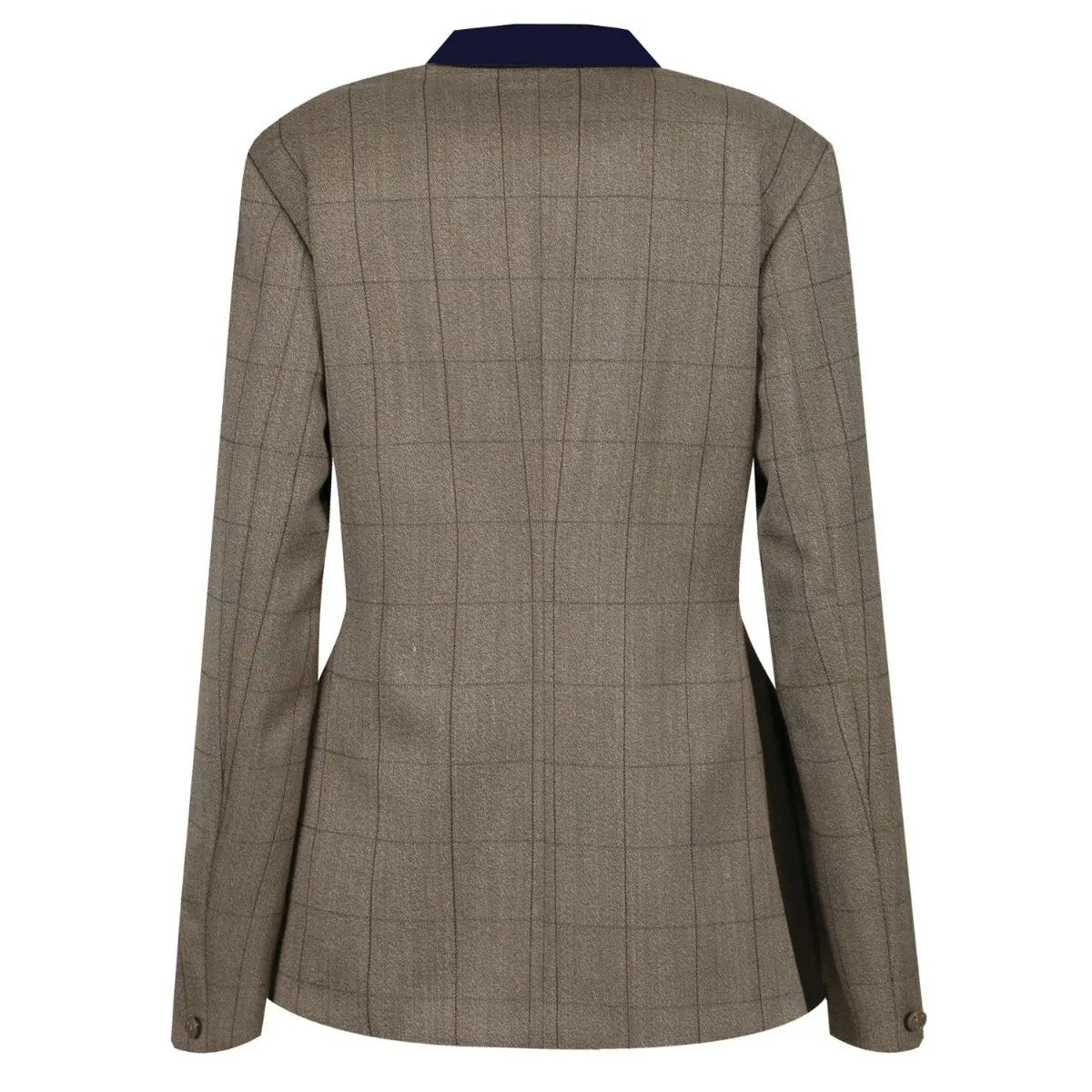 This traditional tweed competition jacket from Equetech is ideal for riders looking for a more subtle, stylish showing competition jacket for ladies; it features subtle brown and green overchecks for a traditional, stylish look in the show ring. With the added feature of navy velvet collar and pocket darts when compared to the standard Foxbury Ladies Jacket.