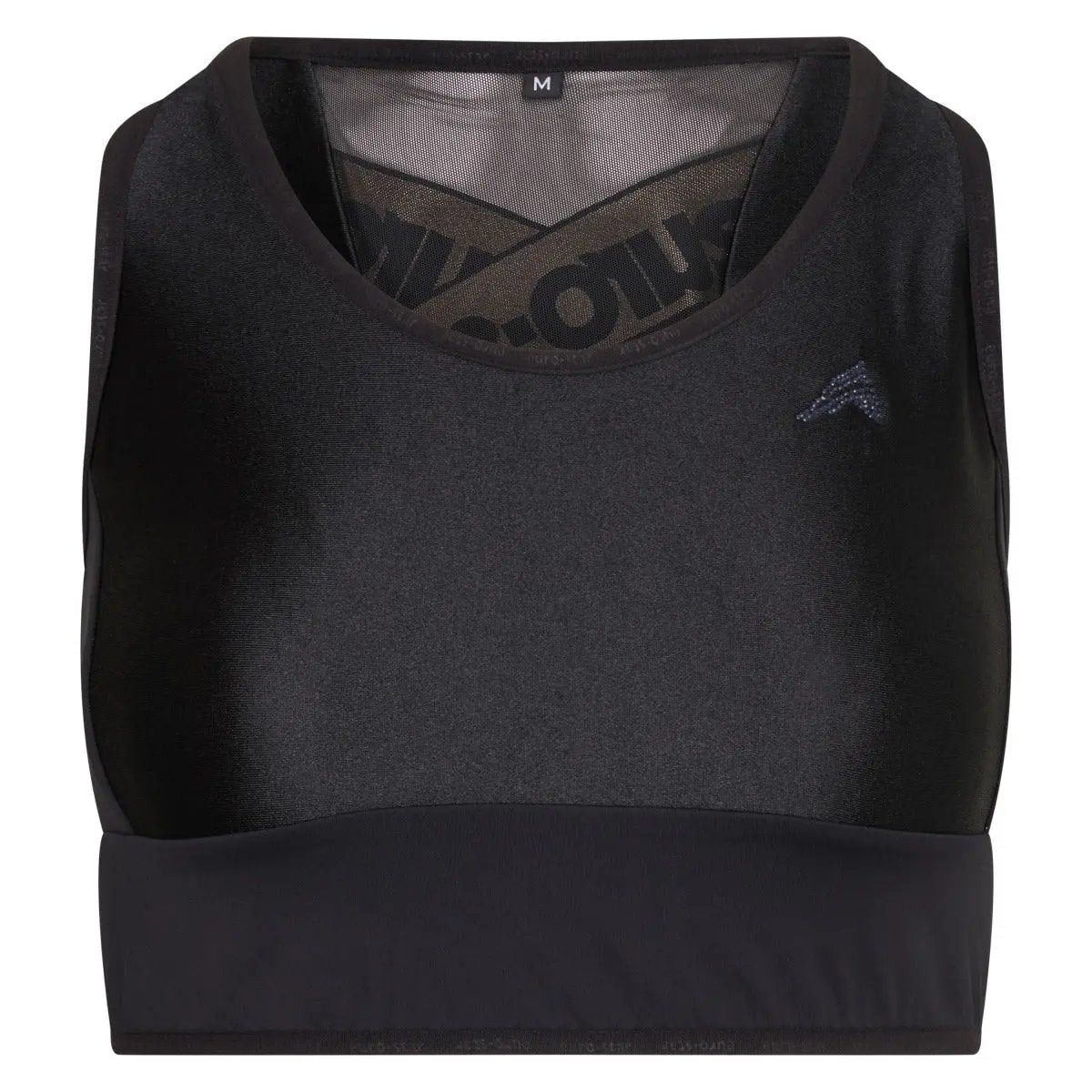 Designed for support with flexibility for full movement, the Euro-Star Yoka Sports Bra is a functional sports top with elasticated straps at the back panel featuring contrast Euro-Star branding in gold print. Curved side seams lie comfortably against your skin, offering a smooth and free feel. The contrast of shiny fabric with matt under-band gives an athletic, sporty look.