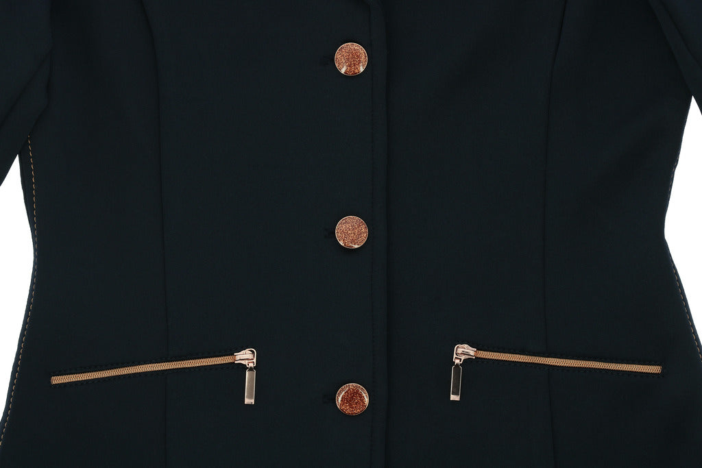 Other features include two rear vents to provide better overall movement in the jacket, 4 rose gold buttons, rose gold zipped pockets and rose gold stitching. Finished with Equi-theme branding on the inside of the jacket.
