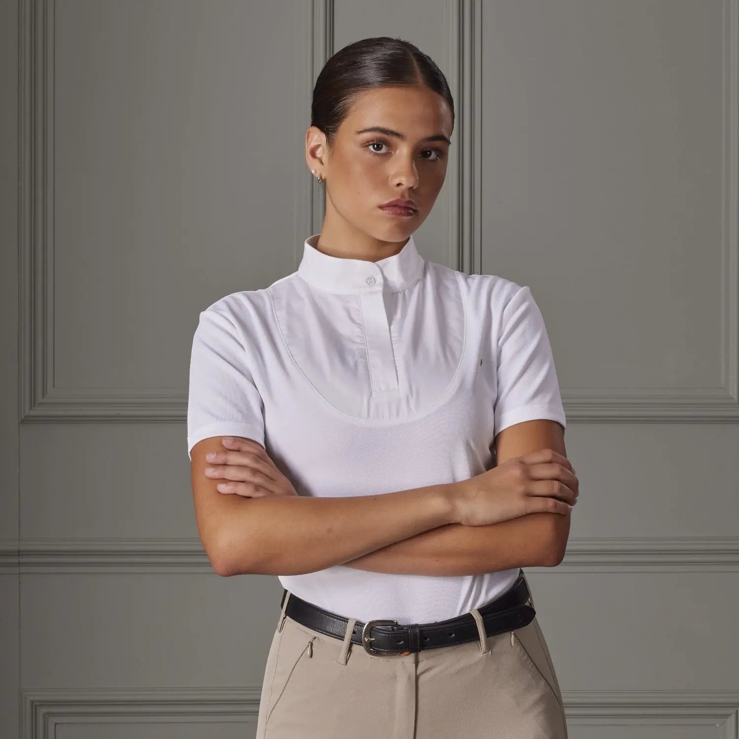 The Shires Aubrion Ladies Short Sleeve Stock Shirt offers a classic competition look with the added benefits of sportactive technology.