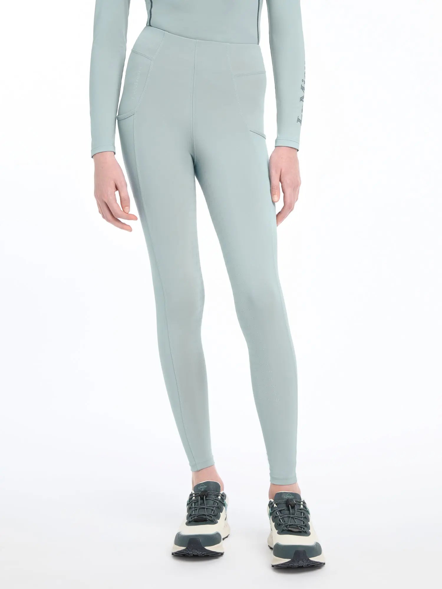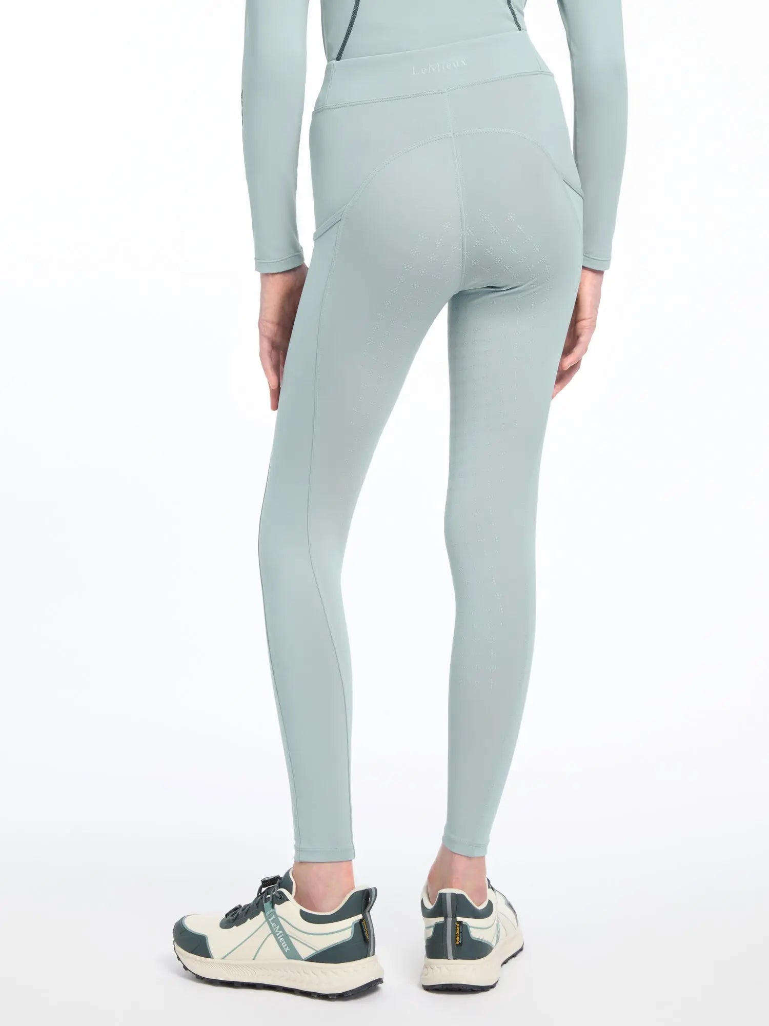 The LeMieux Young Rider Orla Glacier Pull On Breeches offer four-way stretch fabric and an elasticated waistband for unrestricted movement and a secure fit. With phone pockets and a full seat silicone pattern for grip, these breeches are perfect for riders looking to combine comfort and style. The tapered lower leg design with a lycra sleeve is snug and comfortable beneath riding boots.