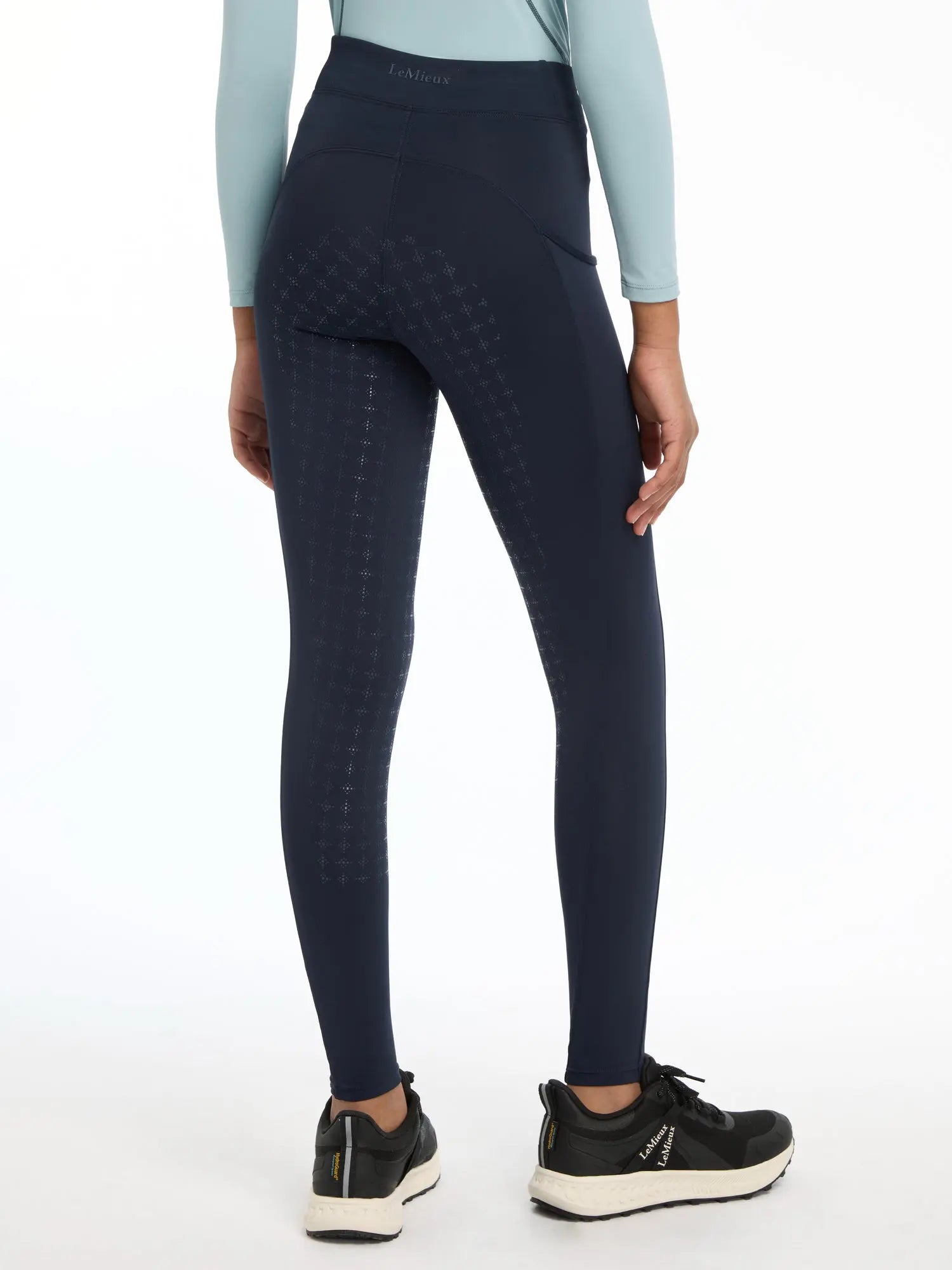 The LeMieux Young Rider Orla Navy Pull On Breeches are the perfect choice for everyday legwear. Built for comfort and designed for wear all day long, these stretch breeches are made from a technical, lightweight fabric and have a seamless design with a deep, supportive, elasticated waistband. The lightweight, technical fabric harnesses sweat-wicking technology that pulls excess moisture away from skin, keeping young riders cool and dry while working around the yard or while riding in the saddle.