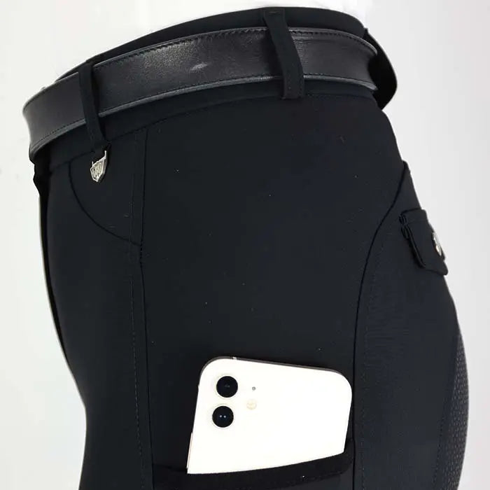 The high waistband and flowing lines give a flattering silhouette in comfortable 4-way stretch fabric to give a perfect fit and great Performance in the saddle.