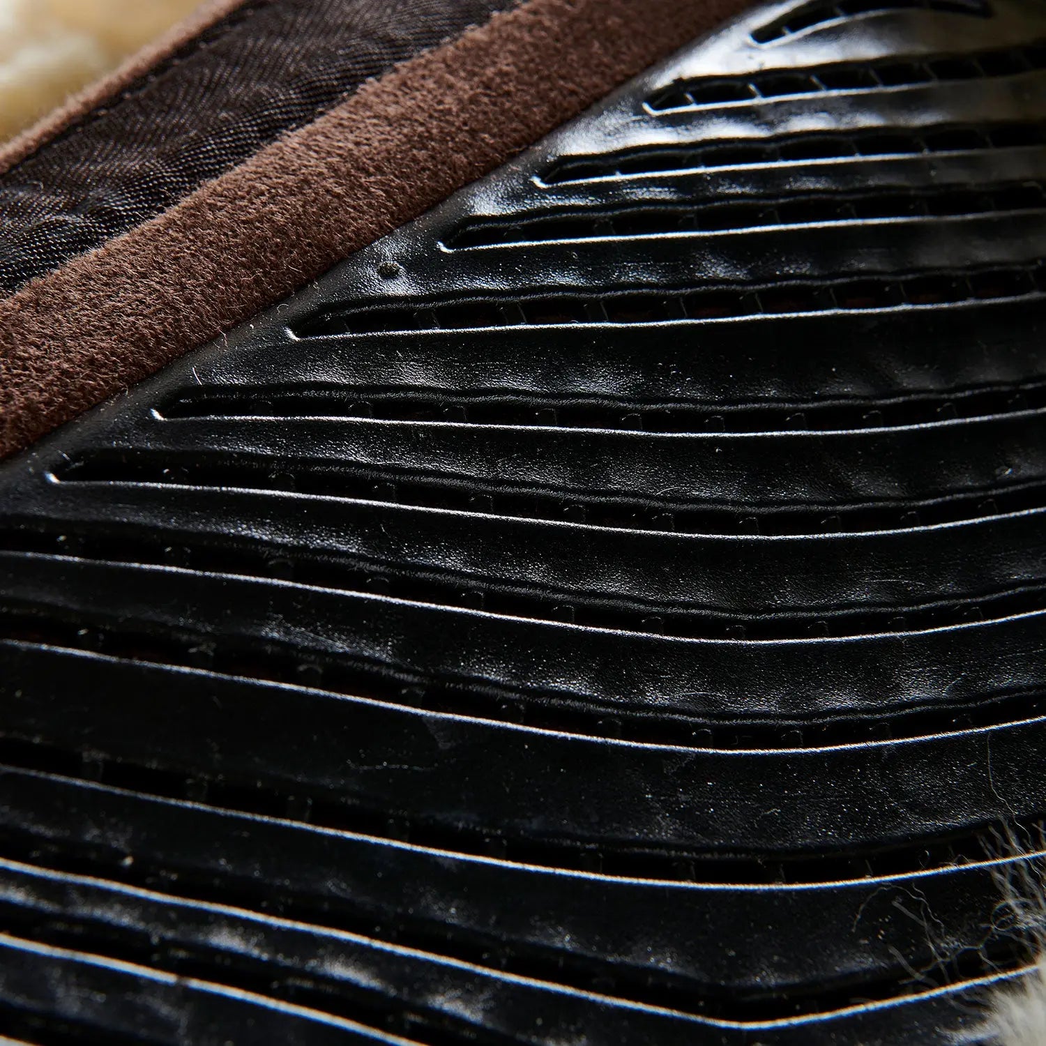 The edge of the pad is partially covered in sheepskin, a natural material known for its softness and gentleness on the horse's skin. Sheepskin prevents chafing, abrasions and blisters, ensuring comfort and protection.