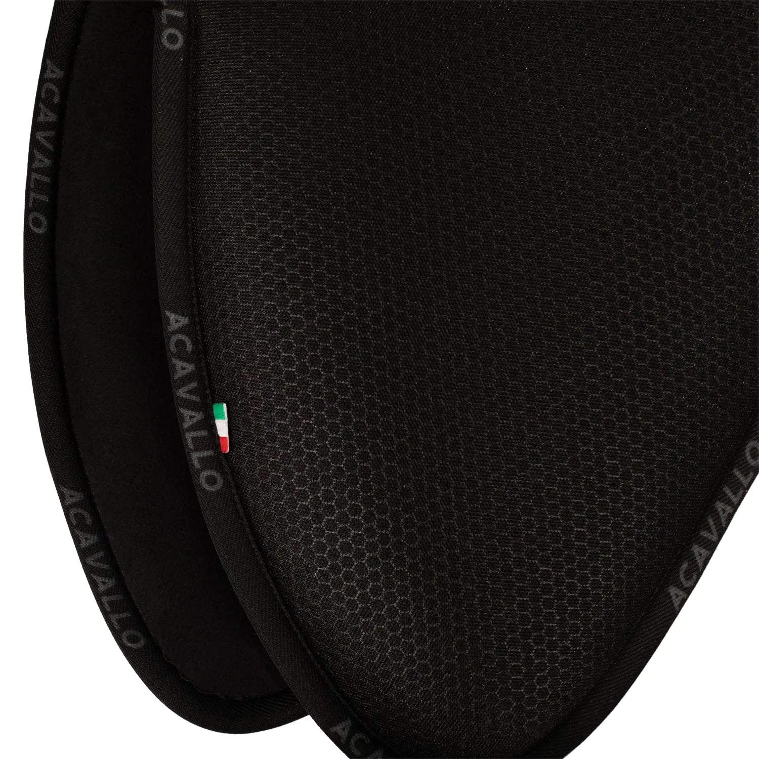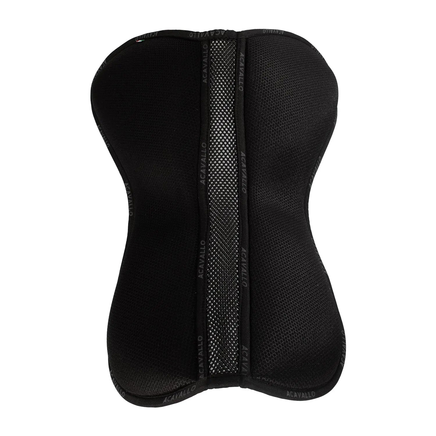 >The central 3D spacer insert adapts perfectly to the horse's silhouette, eliminating spinal pressure and improving adherence to the saddle.