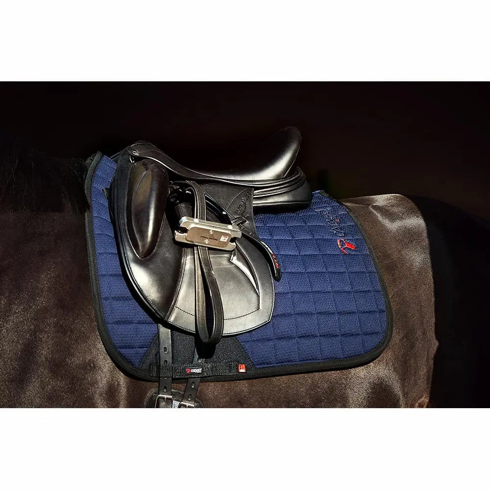 The Catago FIR-Tech Healing saddle pad combines Synthermax fibrefill and a lining material embedded with woven ceramic particles, offering an innovative dual-action effect.