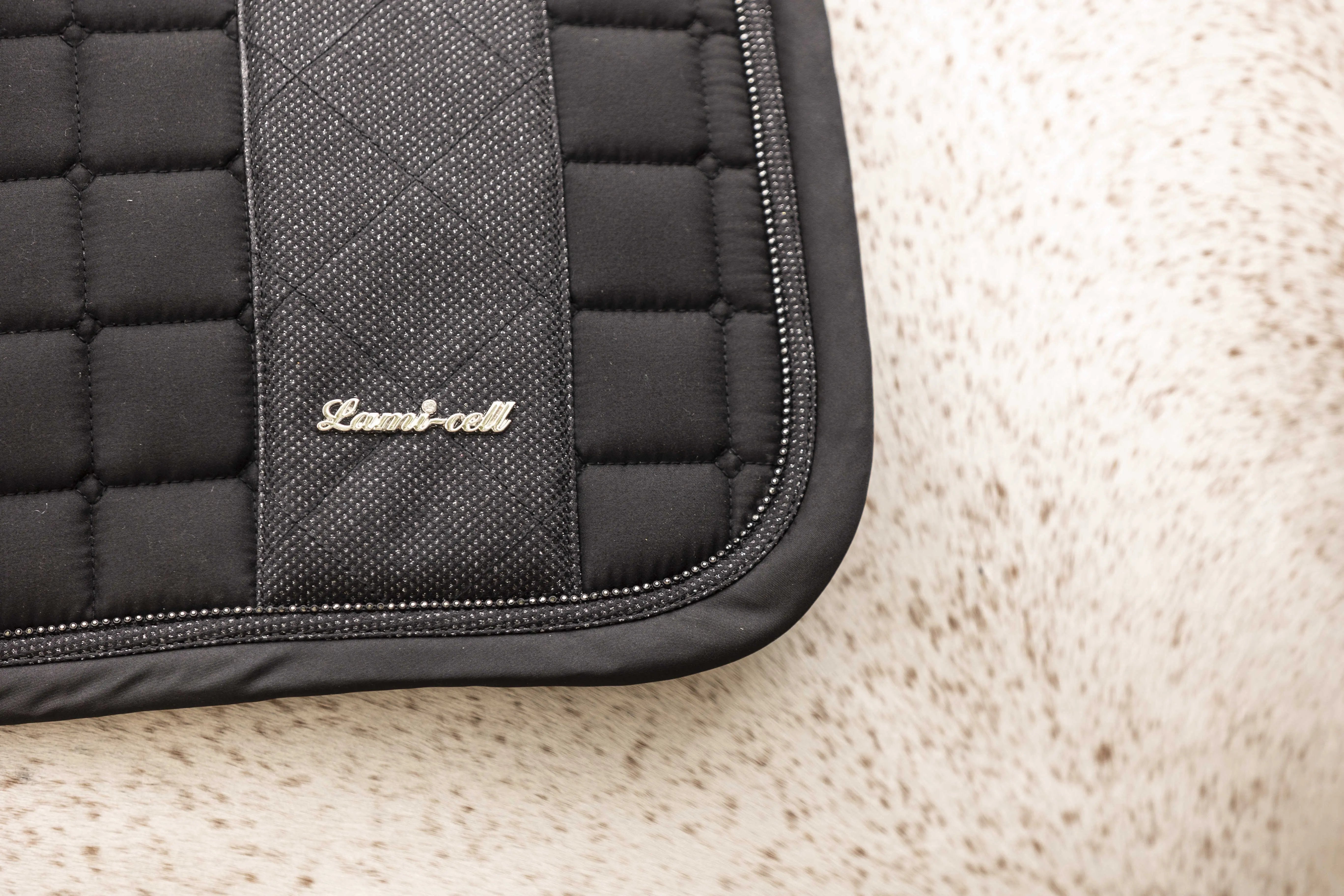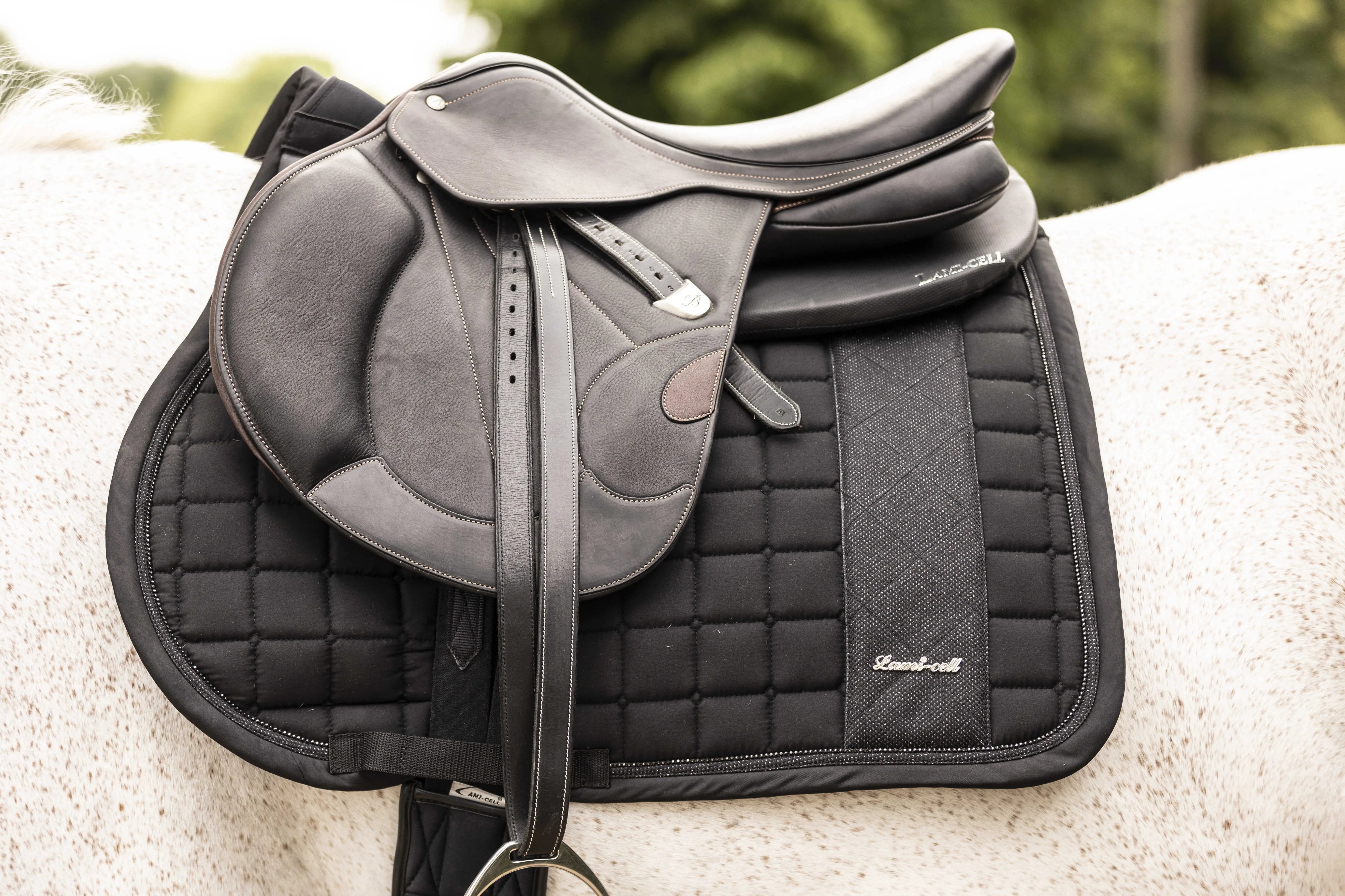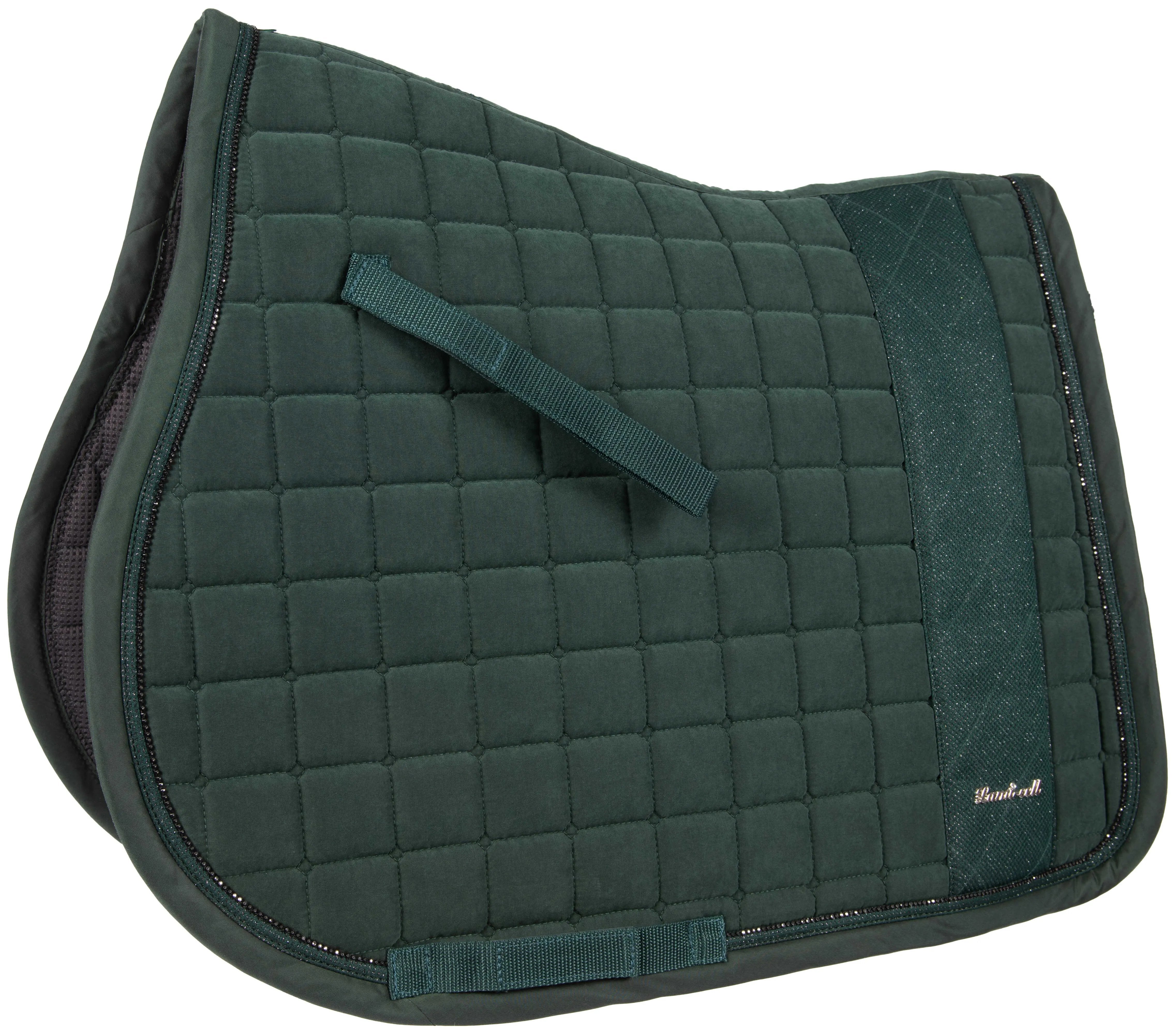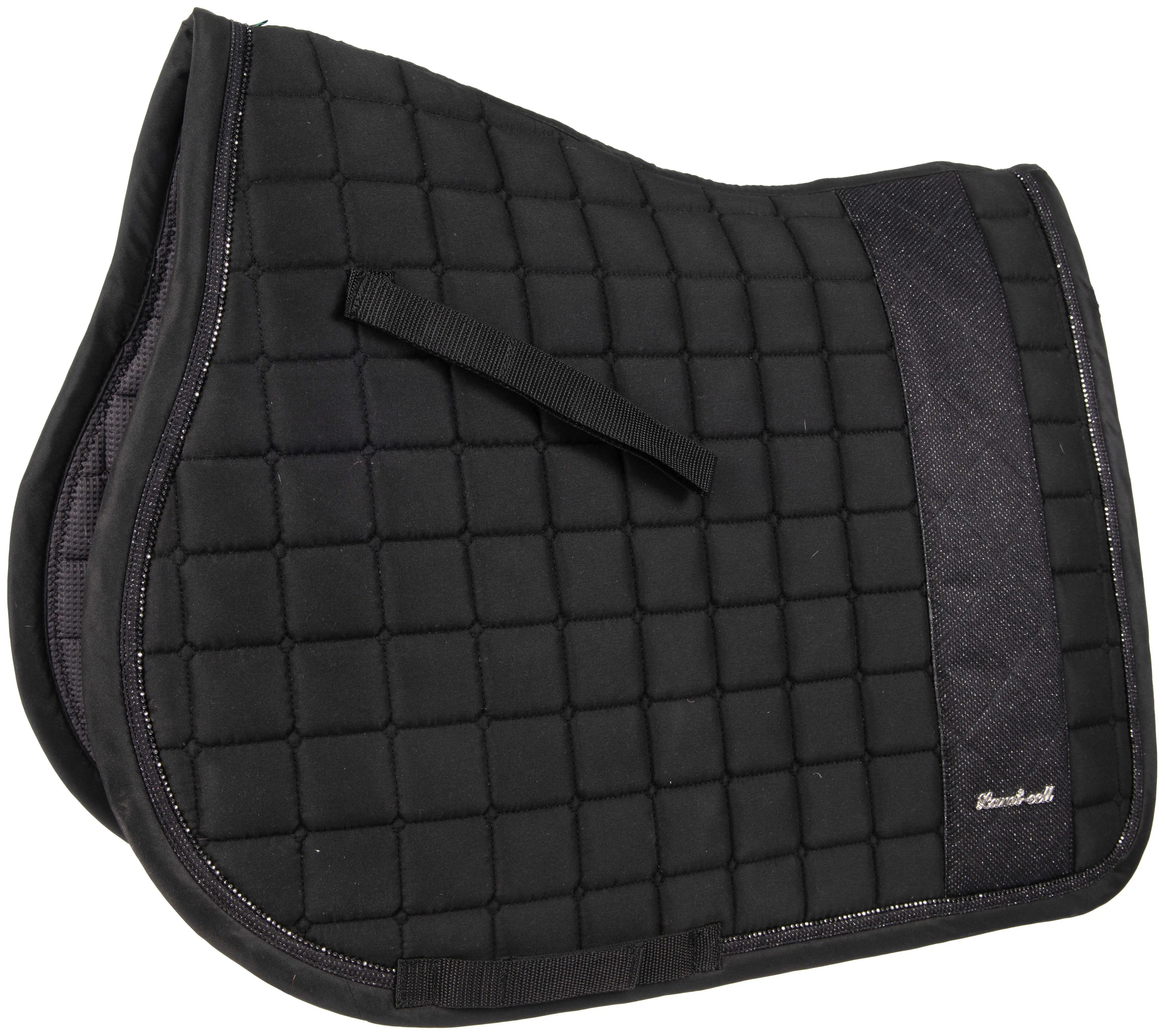 Microfibre touch saddle pad with glittering lamé vertical stripe.