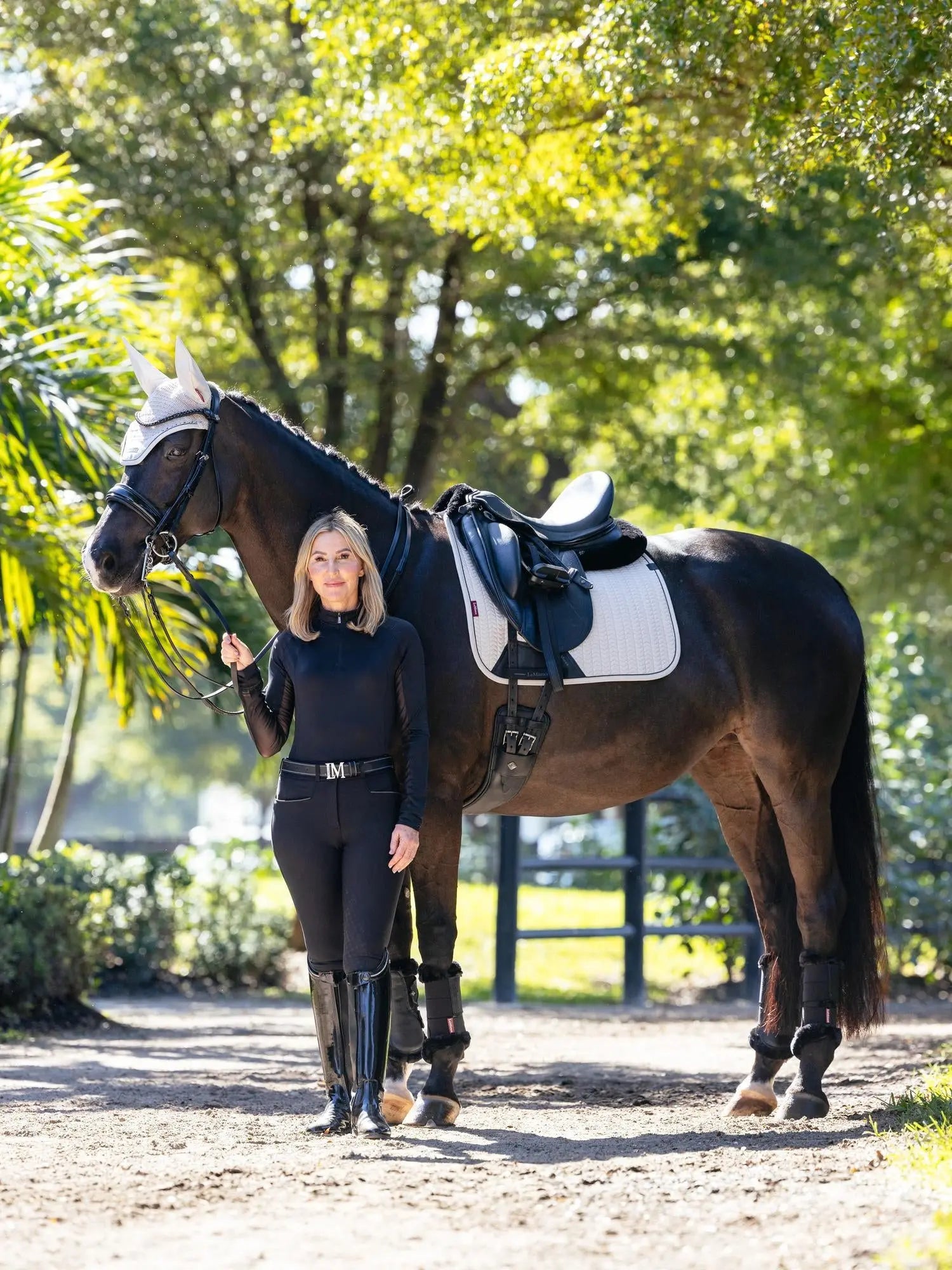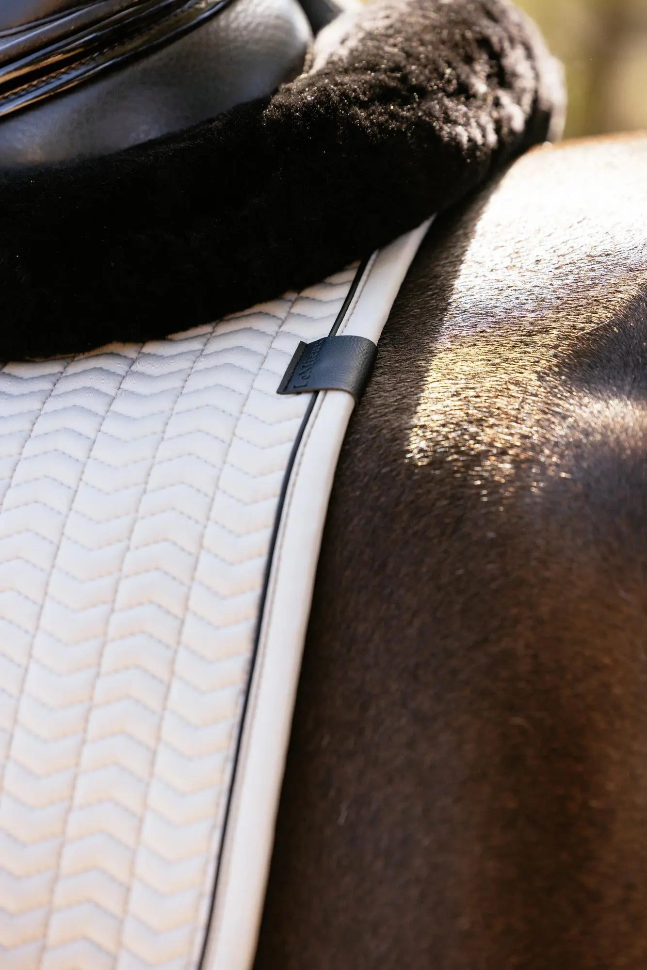 Designed for elite riders with technical performance that everyone can enjoy, the soft shell fabric of the Essence Collection of saddle pads exudes class. The contour quilted soft shell upper, meticulously designed to hug your horse's curves without wrinkling, is teamed with a soft, breathable self-cool lining. The cooling material is woven with cooling fibres, controlling heat by transferring heat away from the skin and wicking sweat efficiently to cool your horse. The warmer your horse gets, the harder the moisture-activated cooling lining works under the saddle. Combined with a full 3D carbon mesh spine for maximum airflow, this is a saddle pad uniquely designed for hardworking horses. The high wither shape reduces pressure and enhances your saddle's fit. Elasticated saddle straps, thoughtfully designed to be slimmer at the point of connecting to the D-ring, leave room for extra accessories catering to your specific training needs. The whole pad benefits from extensively researched, soft, friction-free binding that is specially fabricated to contour the edges smoothly. This technique helps retain the perfect saddle pad shape and binding profile. Sporty rubberised piping gives the pad a clean, athletic aesthetic. The sporty matte-textured faux leather girth protection area is complemented by an embossed logo. Our signature LeMieux hidden girth loop channels mean you can precisely place your girth. A unique LeMieux branded faux leather tab provides a luxurious finishing touch.