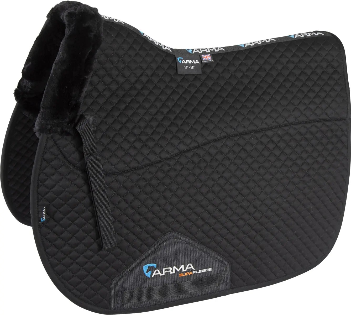 The Shires Performance SupaFleece Saddlecloth is half lined with luxury SupaFleece fleece which looks, wears and feels like sheepskin while washing better than sheepskin and drying super fast! SupaFleece has been designed to combine all the benefits of sheepskin in an easy-care, machine washable fabric.