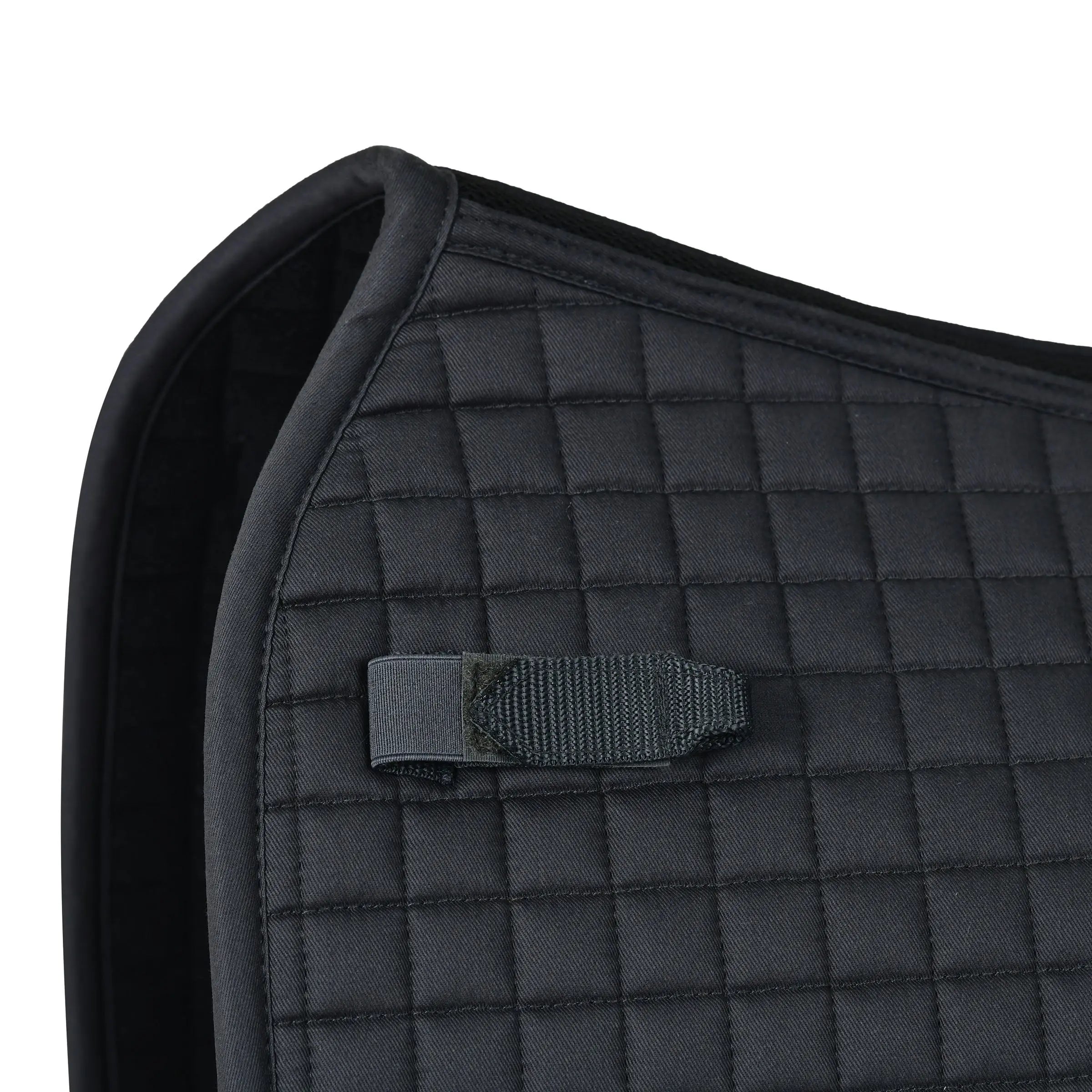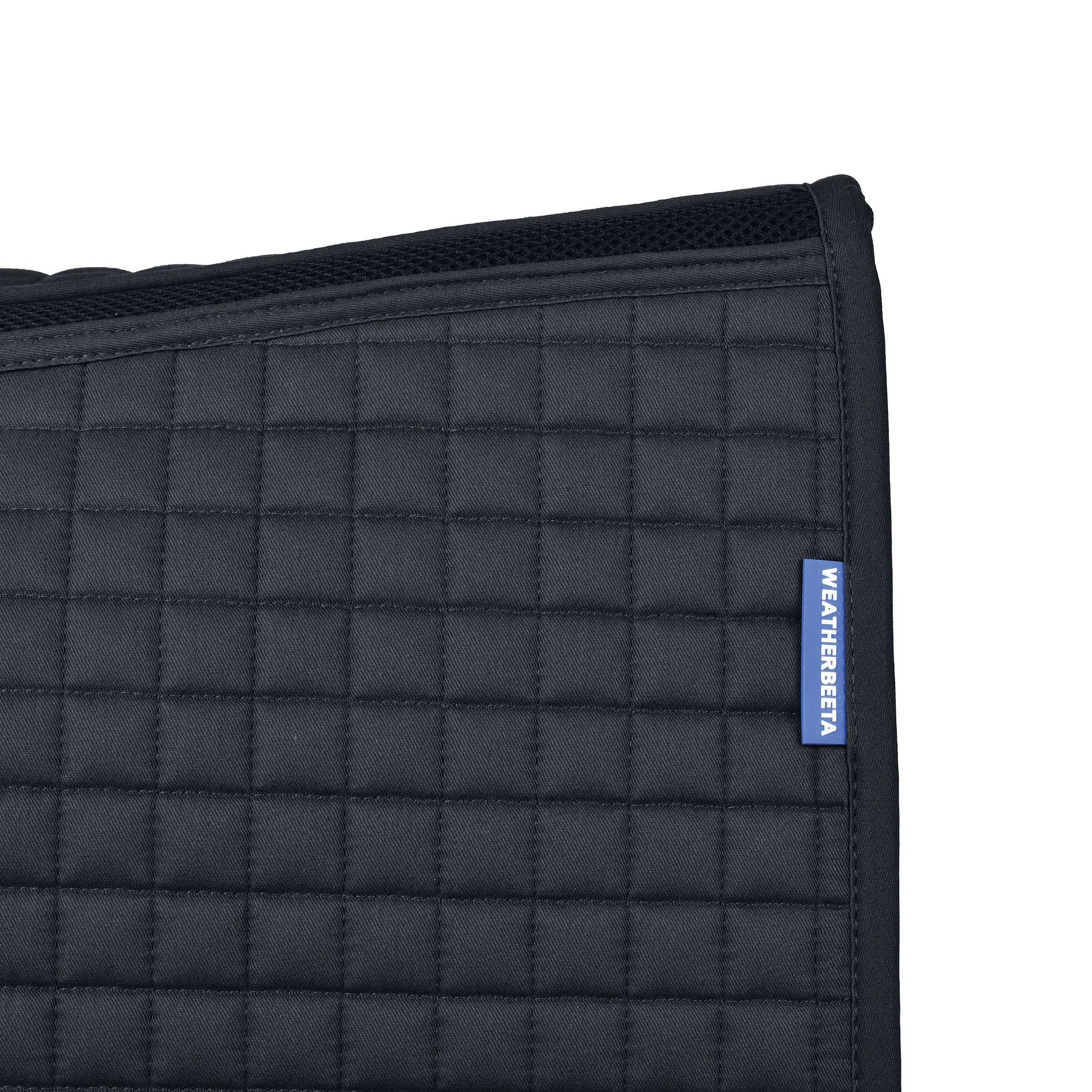 The WeatherBeeta Prime Air-Tec Dressage Saddle Pad is the perfect blend of comfort, durability, and performance for equestrians who expect the best for their horse. Longer straight cut designed to fit dressage saddles, its sleek yet practical construction ensures a secure fit while delivering superior breathability and comfort during training and competitions. The 100% pre-shrunk cotton upper features a durable, friction-free binding, while the innovative wick-easy lining keeps your horse cool and drawing moisture away and drying quickly. Whether you're competing or simply enjoying time with your horse, this saddle pad has been crafted to enhance your riding experience.
