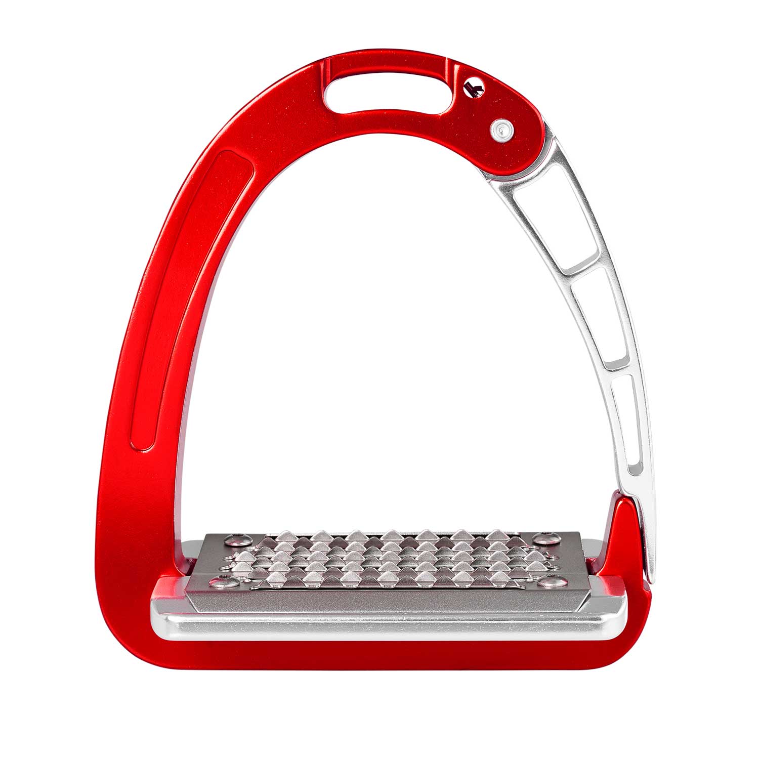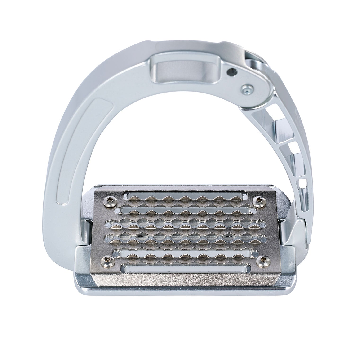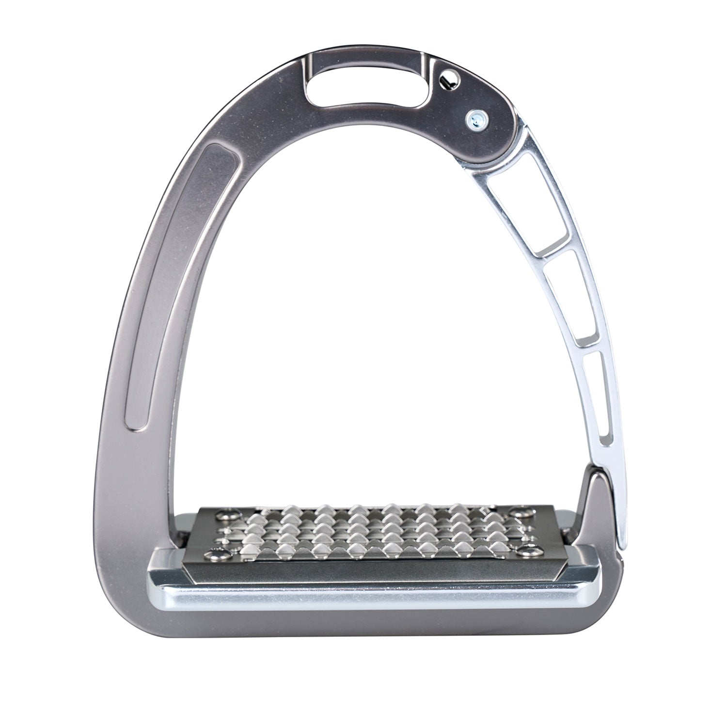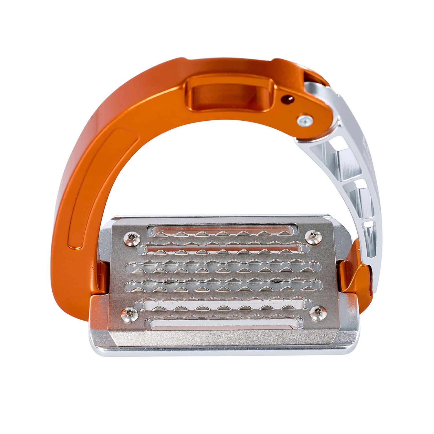 >Made of high quality certified anodized aluminum, these stirrups feature a patented side opening that ensures immediate release of the foot in an emergency.