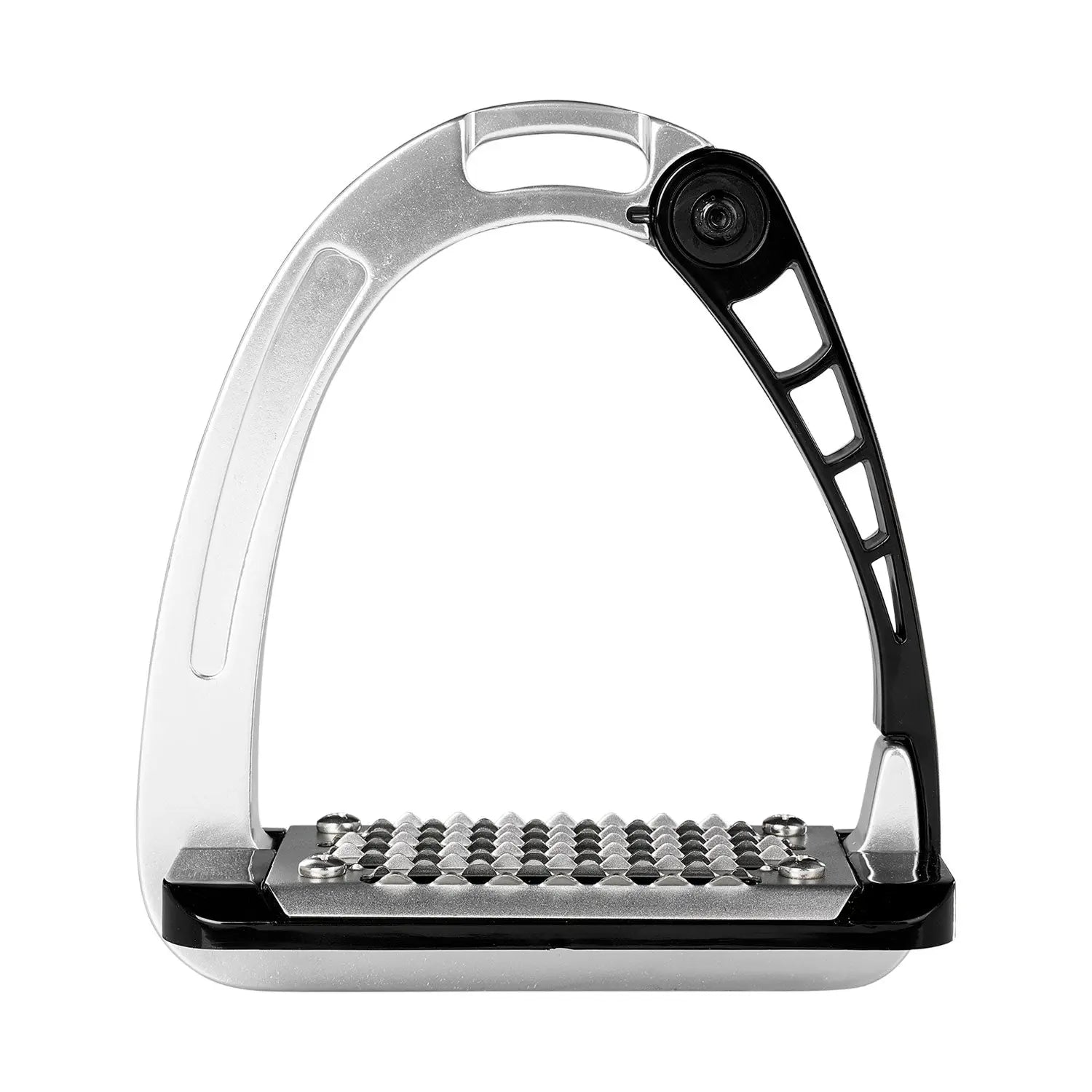 The Acavallo Arena Junior Stirrups Aluminium range is designed for young riders who want reliable safety, comfort and performance. Built on years of focused research and the success of the original Acavallo Arena stirrups, this junior model offers advanced design and quality Italian manufacturing. The patented lateral opening arm is created using an innovative injection moulding process, and the articulated outer arm supports quick foot release in emergency situations. The stress activated lock and release mechanism is positioned one centimetre above the tread which helps prevent accidental sideways slipping while also protecting the system from sand and dirt that could slow the release action.