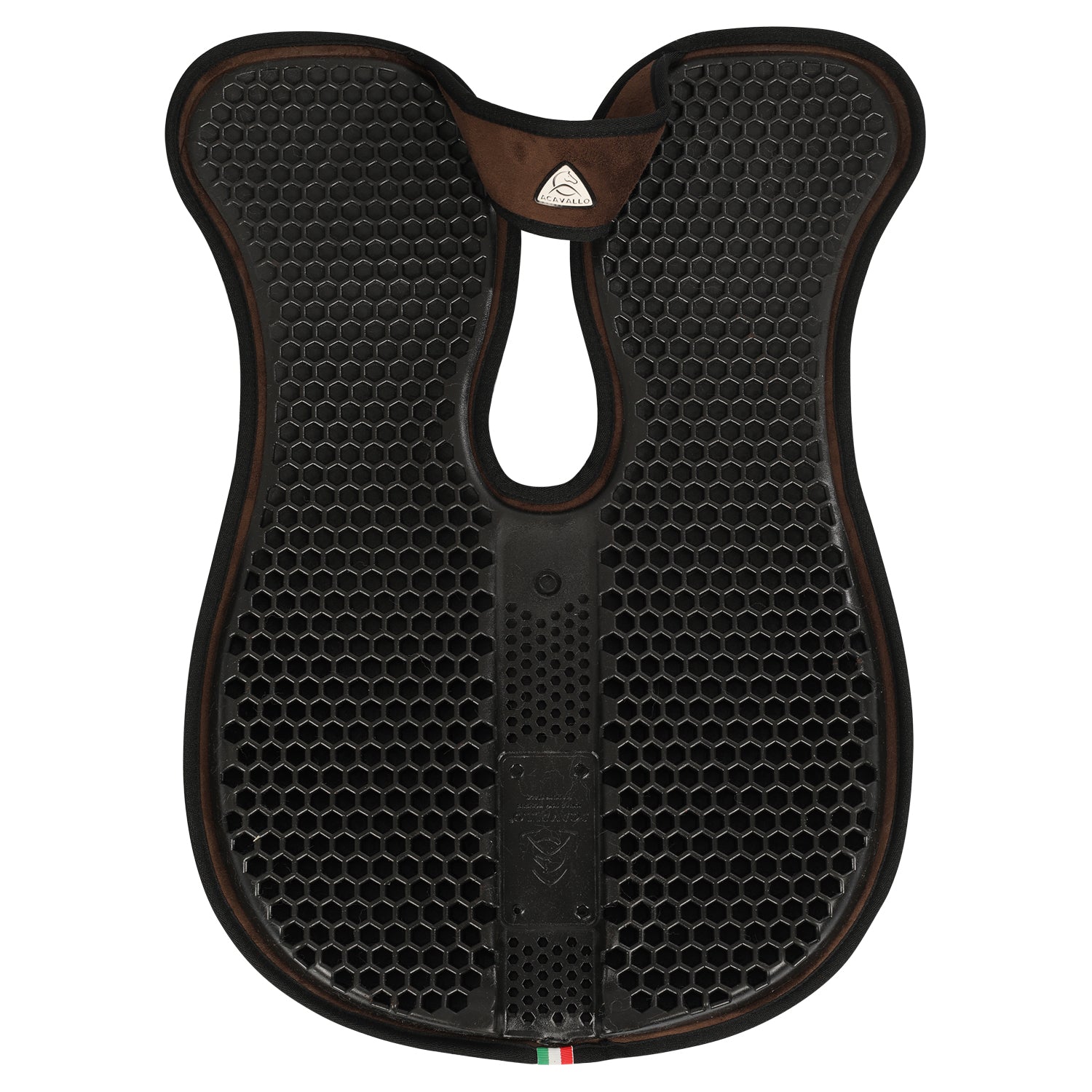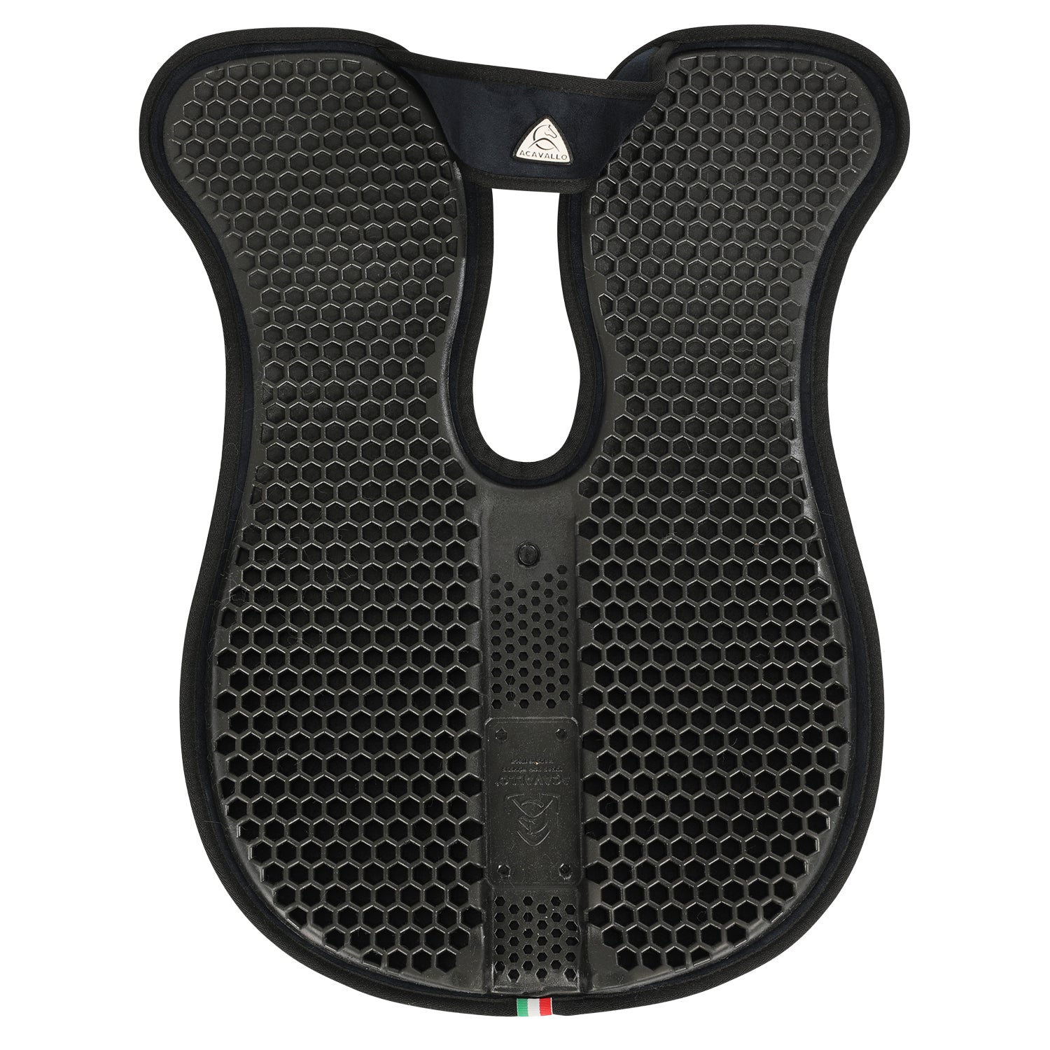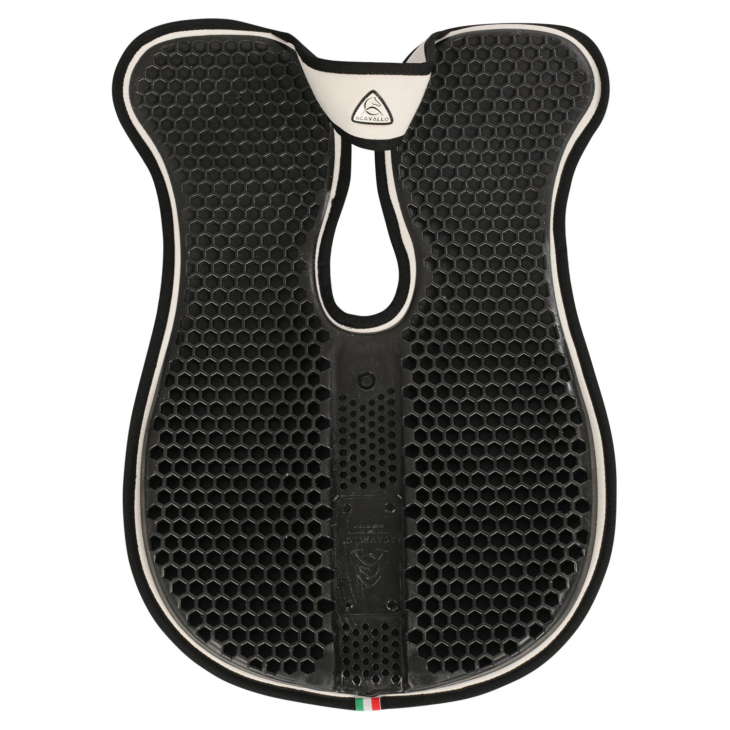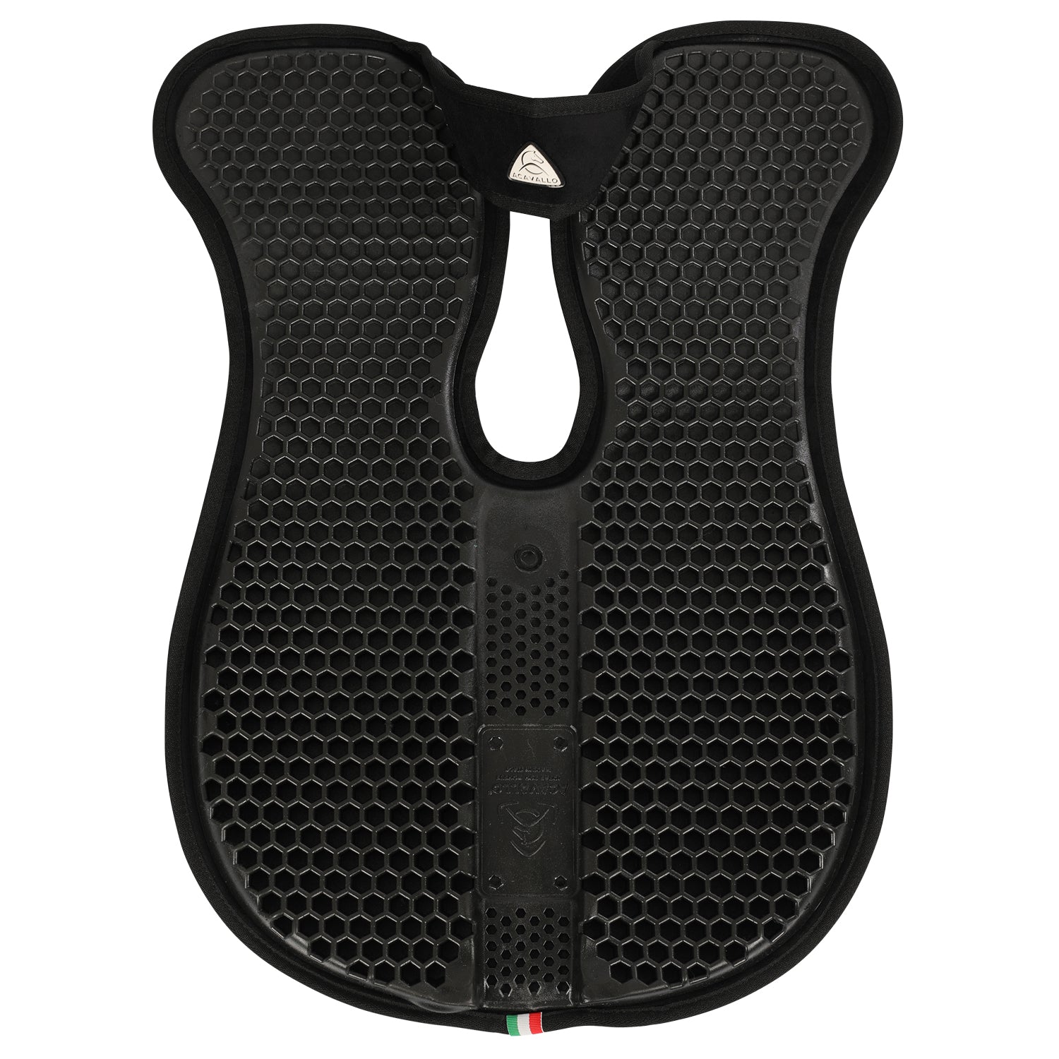 >The non-slip, shock-absorbing and hexagonal-shaped gel of this pad, combined in the lower part with suede fabric and with a 4mm thick internal open-cell foam, make it breathable, while maintaining maximum comfort on the horse's back.