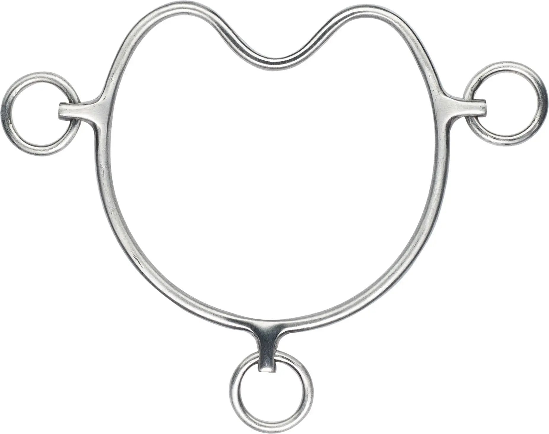 In satin stainless steel. Used only for presenting stallions in hand and walking hot horses on the lunge. Violent action on the bars when the horse rears.