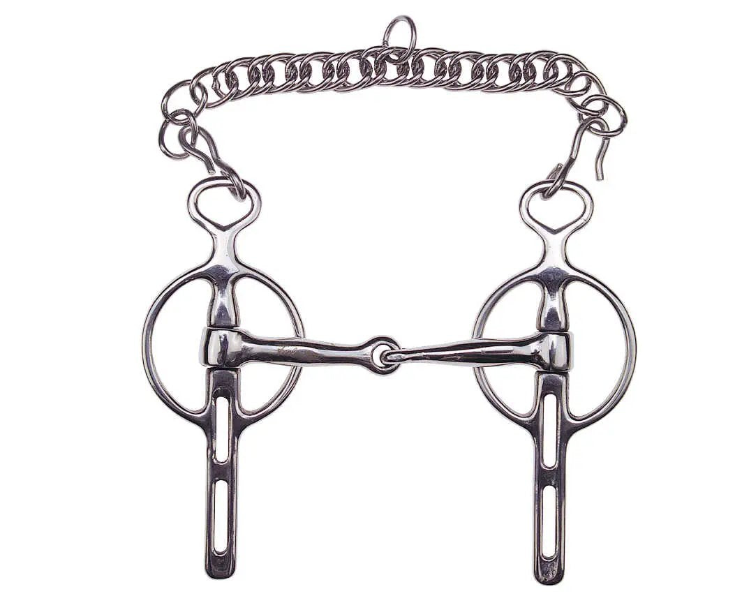 Stainless steel with jointed mouthpiece and sliding cheeks.Sizes 115 and 125 = branches with 2 holes.Sizes 135 to 165 = longer branches with 3 holes.