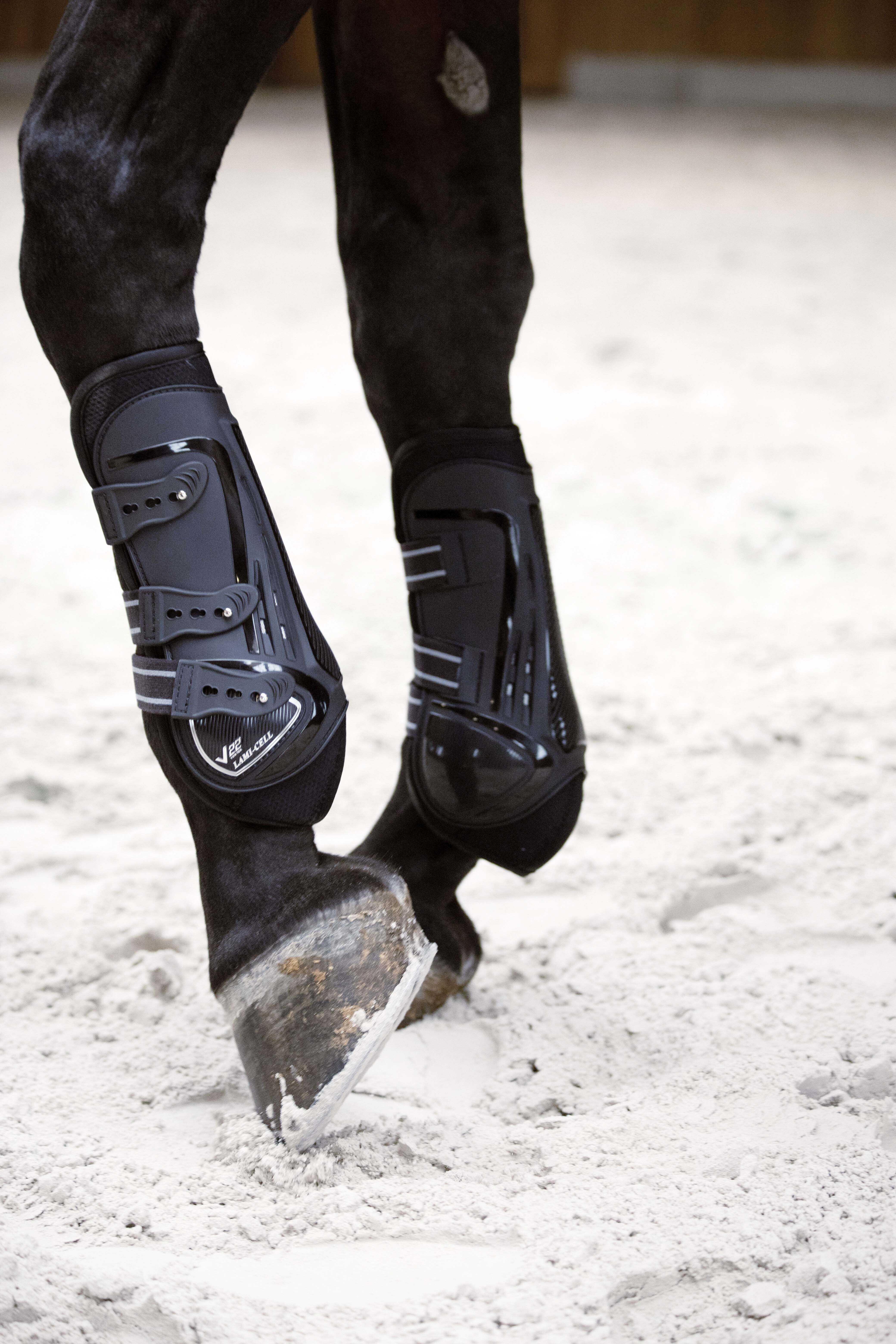 - Protection: Carbon-look outer shell that absorbs impacts on the tendons, with V22 Ventex neoprene extending beneath the fetlock.