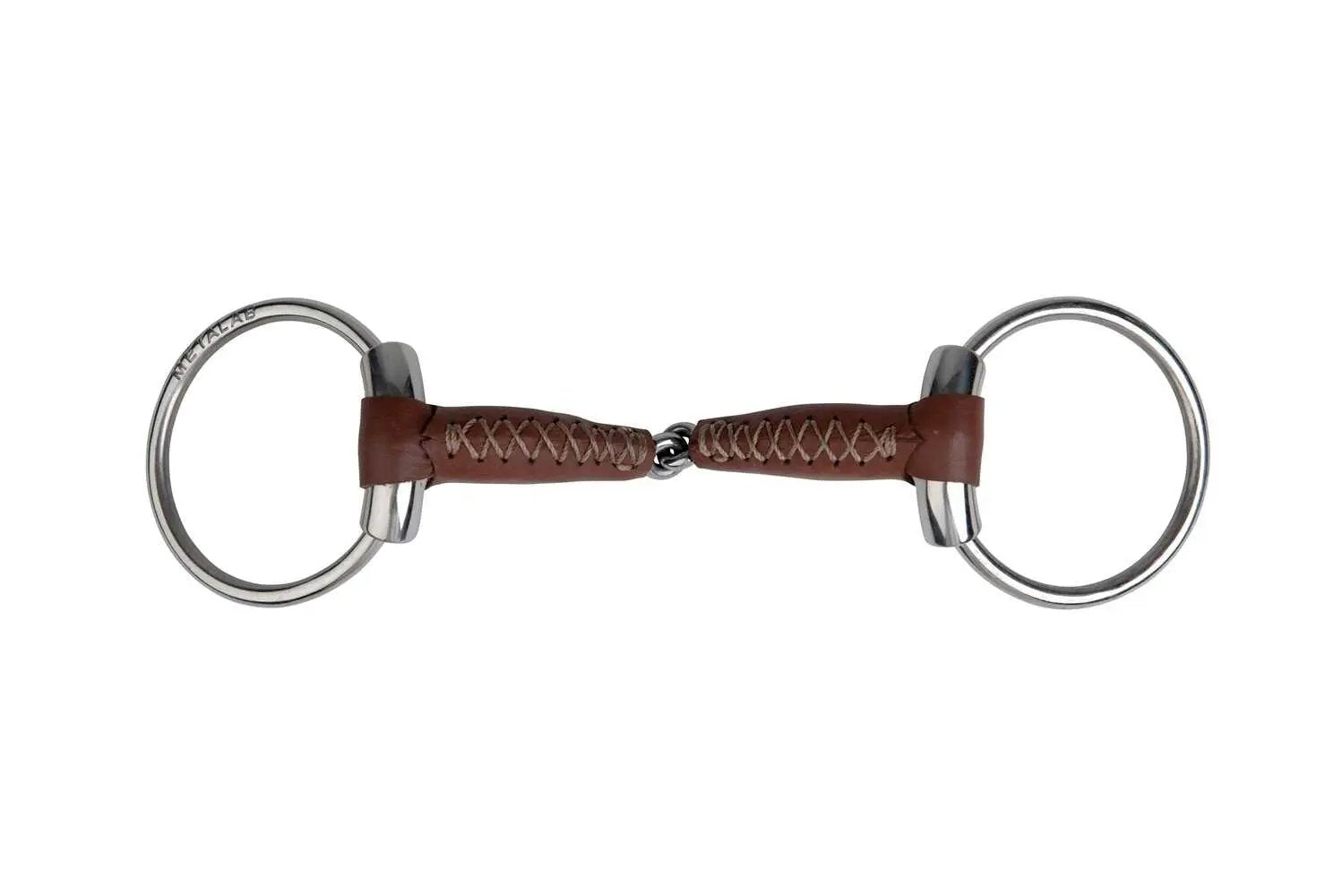 In stainless steel, leather-covered, single-jointed with protection of the corners.