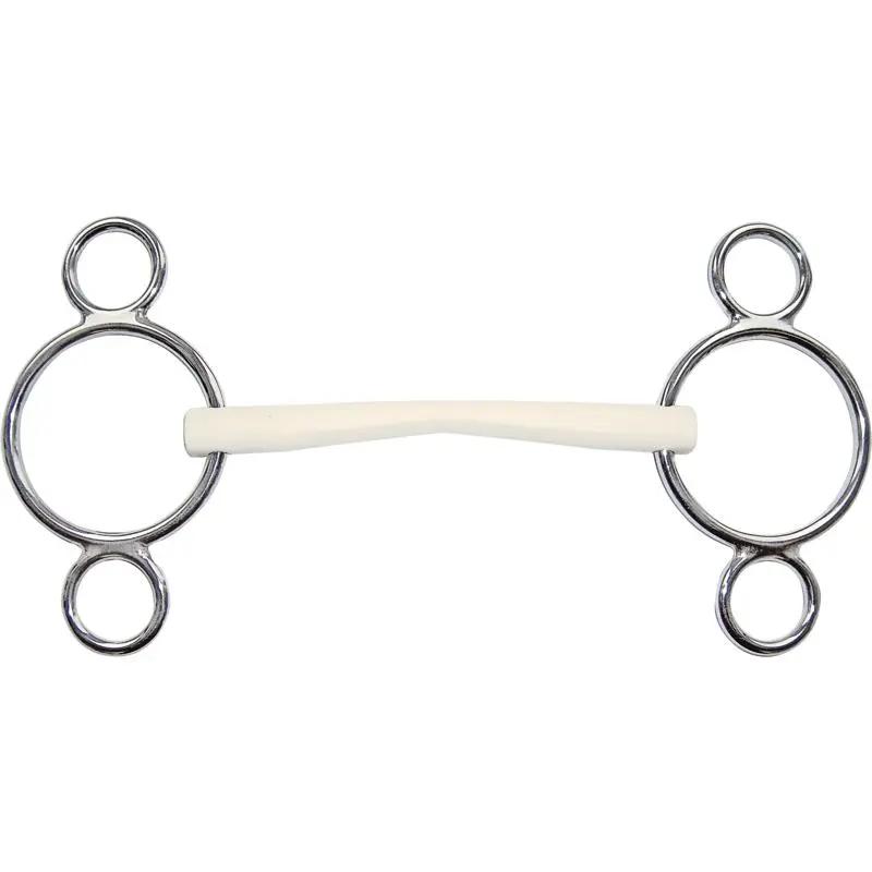 Sprenger Duo bits are very gentle on the horse's mouth. The mouthpiece is made of soft, flexible plastic which adapts to the horse's mouth in an ideal way. The material is food-safe, solvent-free and does not contain any plasticisers. The mouthpiece is reinforced with a steel cable to make it stable and to provide more security. The V shape mouthpiece gives some tongue relief. Encourages the horse to chew and it is kind to the mouth and tongue.
