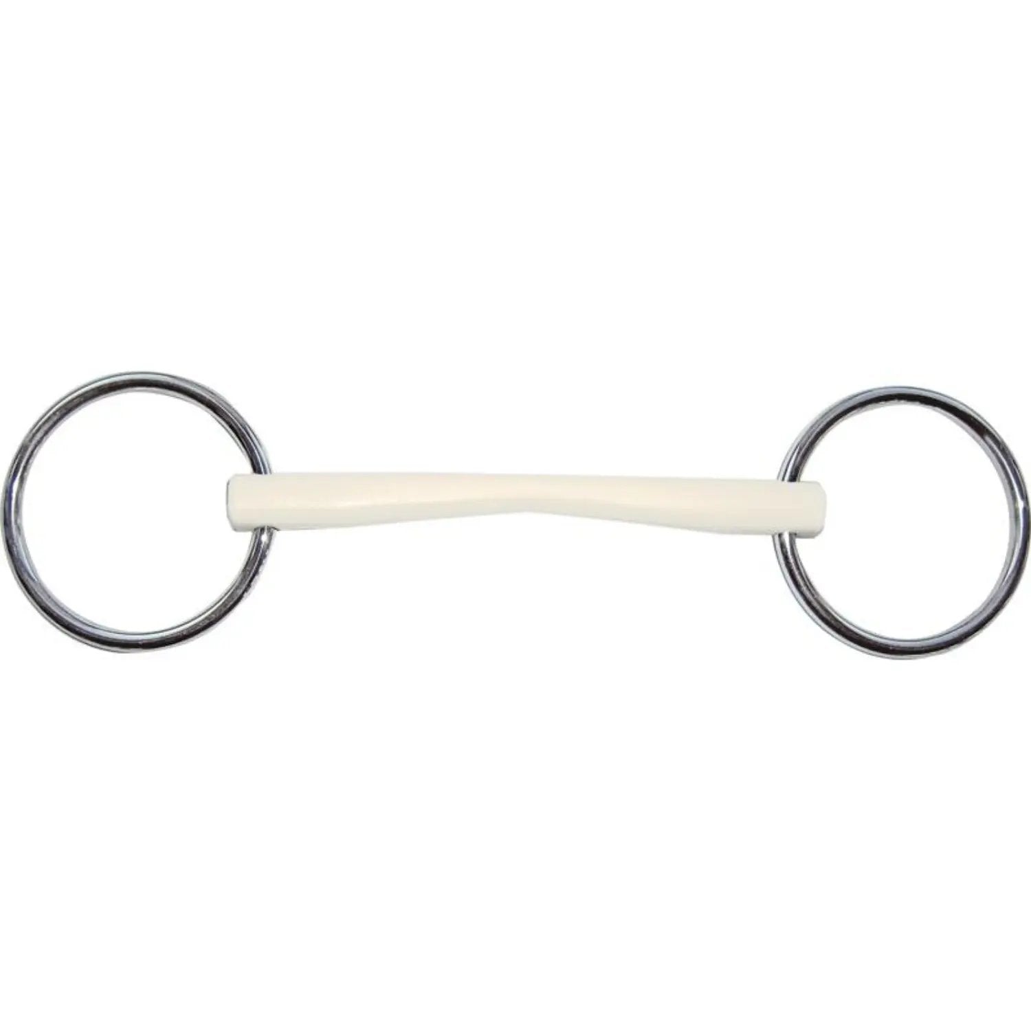 The Sprenger Duo Loose Ring is designed to be very gentle on the horse's mouth. The mouthpiece is made from soft, flexible plastic reinforced with a steel cable to make it stable and secure during use. The plastic used is food-safe, solvent-free and doesn't contain any plasticisers.