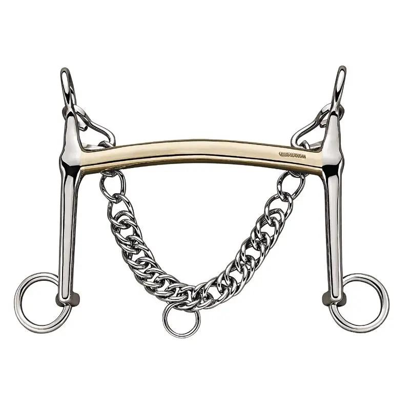 The French Weymouth is slightly curved without a port and evenly distributes the pressure to the whole tongue width and the lower jaw bones. Made from German Silver.